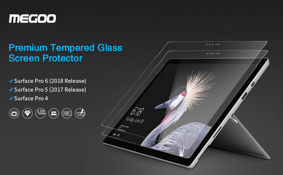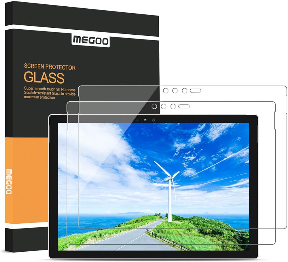 Megoo [عبوتان] واقي شاشة من الزجاج المقوى لجهاز Surface Pro 6/5/4 (2016-2019)، شفاف عالي الدقة/لمس ناعم/مقاوم للخدش، متوافق مع Microsoft Surface Pro 2016-2018، وليس لـ Pro 7 (2019-2020)