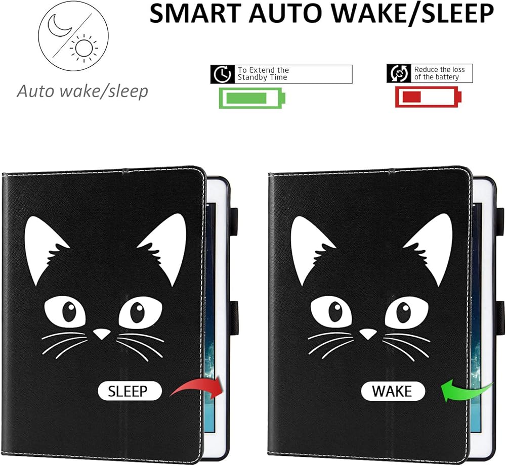[نوم / استيقاظ تلقائي موثوق]: يمكن للغطاء المغناطيسي أن يستيقظ جهاز iPad على الفور عند فتحه، ويجعله ينام بمجرد إغلاقه (إطالة عمر البطارية). يعمل المغناطيس على تأمين إغلاق حافظة iPad الخامس/السادس، وسهل التركيب والخلع.