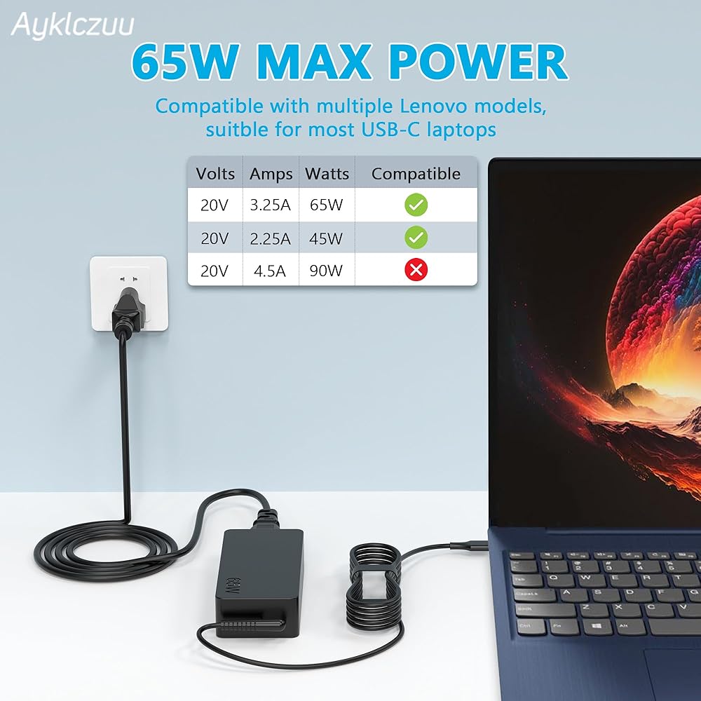 متوافق مع Lenovo Thinkpad T480 T480s T490 T490s T495s T580 T580s T590 T495S L380 L390 L480 L490 E14 E15 E480 E485 E490 P14s P43s P51s A275 A285 A475 A485 65W USB C شاحن الكمبيوتر المحمول