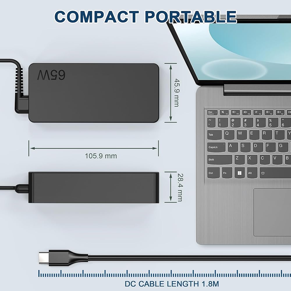 شاحن كمبيوتر محمول USB C 65 واط 45 واط مناسب لجهاز Lenovo ThinkPad Yoga Chromebook Asus Acer Razer Blade Stealth MacBook Samsung شاحن شحن سريع من النوع C 65 واط محول تيار متردد للكمبيوتر المحمول سلك إمداد الطاقة
