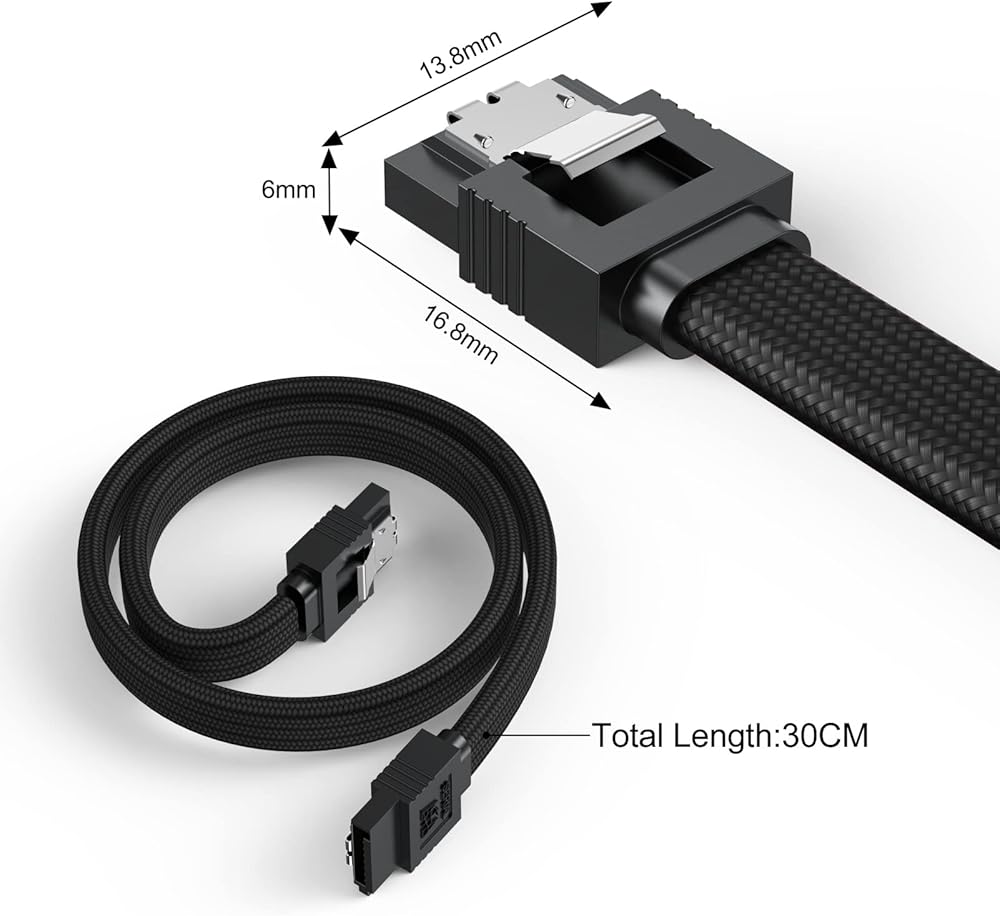 【Durable Nylon Braided 】Nylon braided wire is super sturdy and durable. The straight SATA Cable with Lock latch ensure secure connections for fast and reliable file transfer.