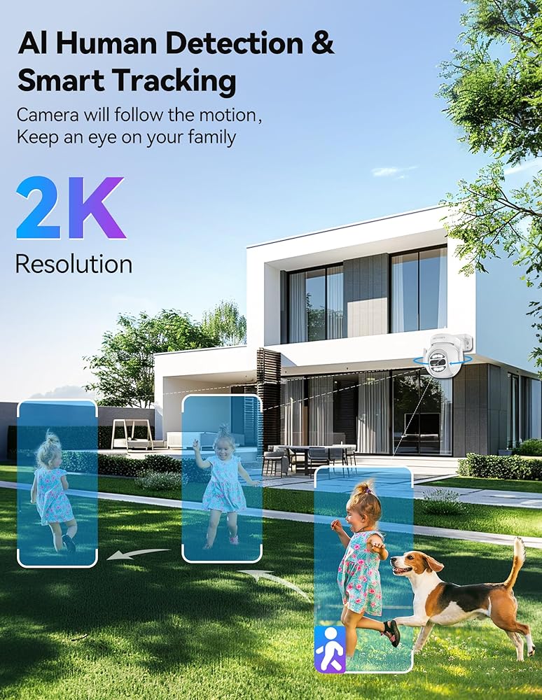 【AI Motion Detection & Human Tracking】 The wireless WiFi camera features an intelligent motion detection sensor that sends notifications to your phone when it detects a human presence. Equipped with AI human tracking technology, it uses advanced algorithms to identify and follow human targets, automatically providing comprehensive tracking and real-time recording. The CCTV camera system locks onto suspicious individuals, capturing their movements wherever they go, and saves the footage in real-time, recording their motion trajectory. This ensures the safety of your home.
