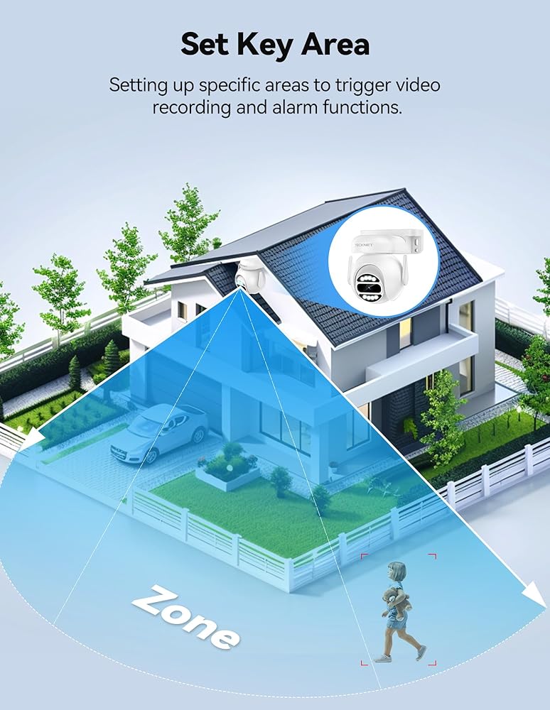 【2K 3MP Ultra HD Quality】 TECKNET security camera outdoor features a high-definition CMOS image sensor paired with a professional lens, delivering video resolution up to 2K Ultra HD. This represents nearly double the pixel count compared to traditional WiFi outdoor cameras, ensuring clear video quality and accurate color reproduction.