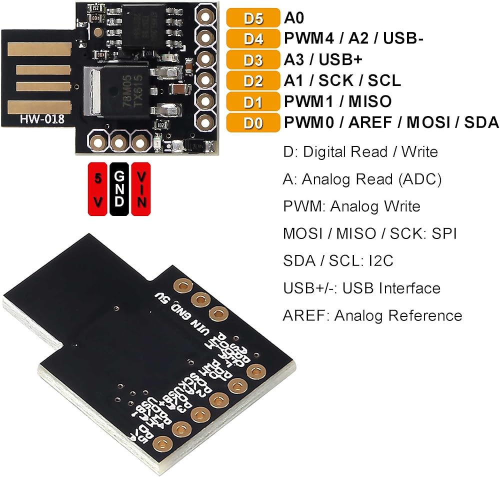 تكلفة منخفضة: Digispark عبارة عن لوحة تطوير لوحدة التحكم الدقيقة تعتمد على ATtiny85 تشبه لوحة Arduino، ولكنها أرخص وأقل قوة قليلاً.
