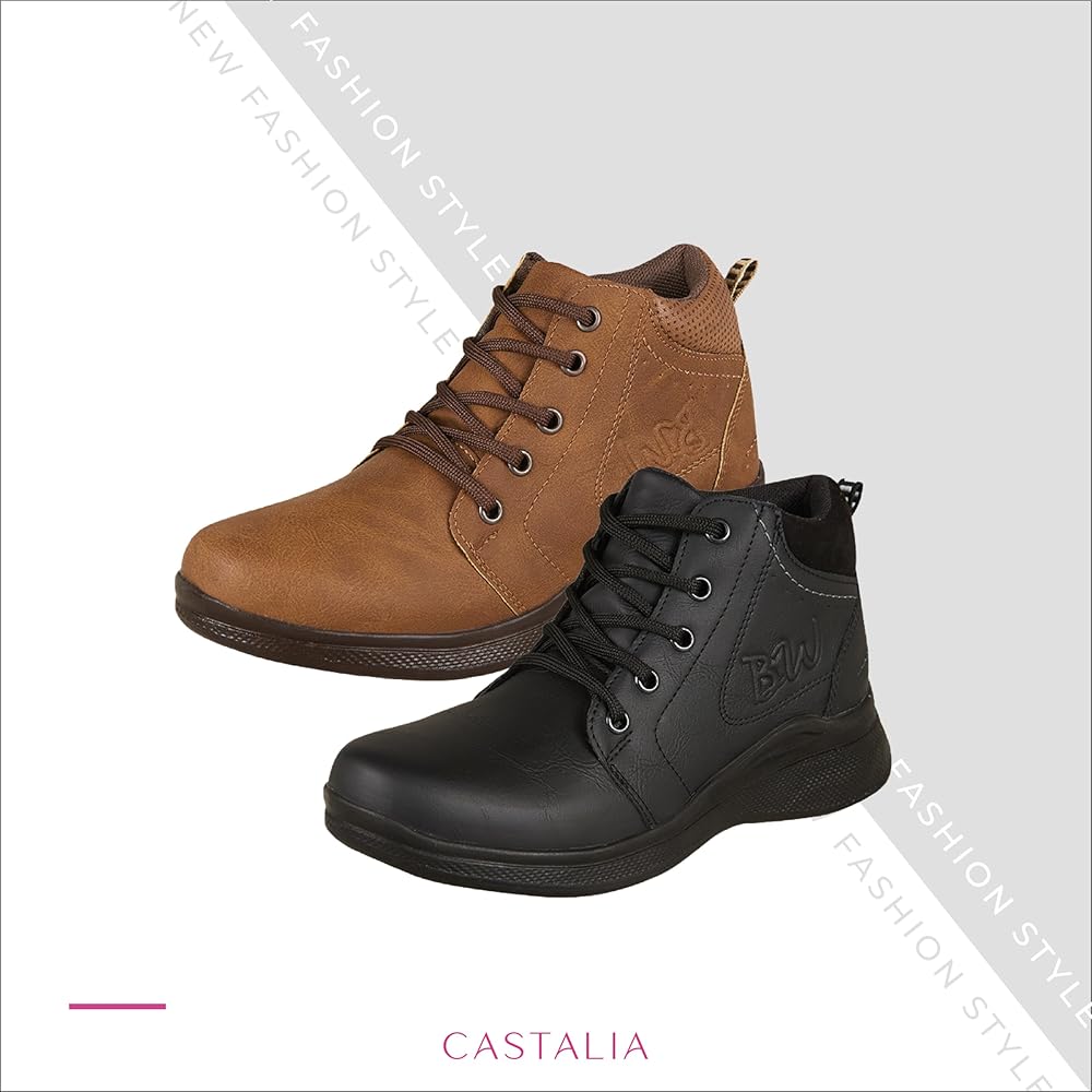 STYLISH LACE-UP DESIGN: Our Essentials womens boots ankle Lace-Up Combat booties for women chunky heel, hugs your ankle for custom support and provides comfort throughout wear. Your feet will not slip, turn or move out of place while wearing these gorgeous, comfort and strong womens booties! CLASSIC DESIGN: Two different colors, same perks. Choose between Black boots and tan booties for women or both! A timeless design that is sure to compliment every modern woman's wardrobe. Update your personal style with a touch of class by purchasing this pair of black chunky boots for women that will last for all memories! This design is perfect wearing a casual outfit, an adventure outfit or even just a comfort outfit. MEASUREMENTS: Check out the listing pictures to make sure you choose of comfortable combat boots for women 2022 is the right fit for you! MATERIALS: Synthetic leather athlefit boots women (Chelsea boots women) comfortable and synthetic lining that made the perfect black chelsea boots for women and cream boots for women. GUARANTEE CASTALIA: This chunky boots for women (botines para mujer) are made with the highest quality materials and unique processes. Made in Mexico. Our high quality standards have a guarantee of 2 months of any damage.