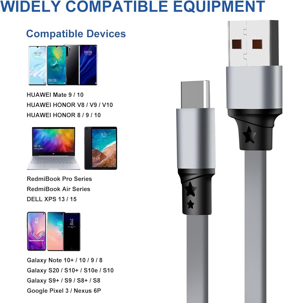 • 【Compatibility List】: This USB A to Type-C cable compatible with Galaxy S21 S21+ / S20 S20+ S20 Ultra Note10/Note 10 Plus,Pixel XL/2/2XL/3/3XL/3a/3a XL,Nexus 6P/5X with the original charger (USB C Port Cell Phones Tablets Universal Use)