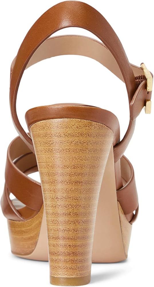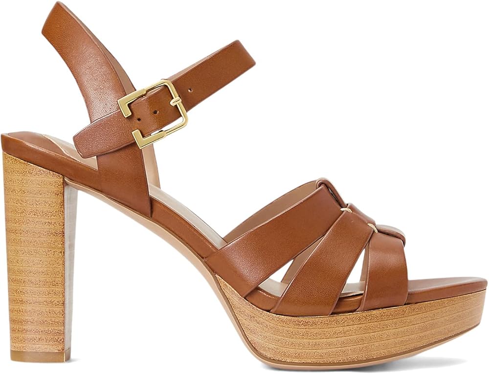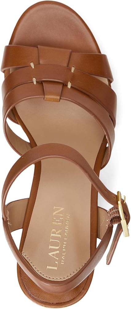 صنادل لورين رالف لورين بكعب صوفيا للنساء - جزء علوي من الجلد بأشرطة - نعل داخلي مبطن - كعب مكدس عميق سرج تان 11 B - متوسط