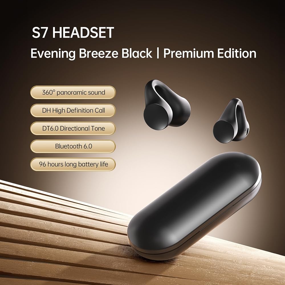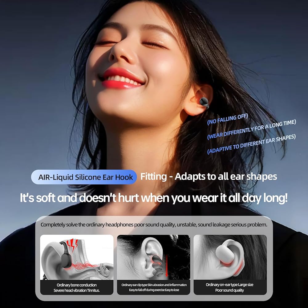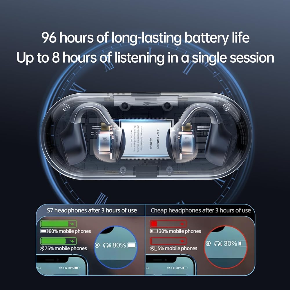 راحة مسامية: استمتع براحة لا مثيل لها مع سماعات الأذن المفتوحة PmJebe S7، المصممة بخبرة للتهوية وتتميز بتصميم آمن بمشبك. استمع إلى أغانيك المفضلة بحرية وراحة إضافية.
