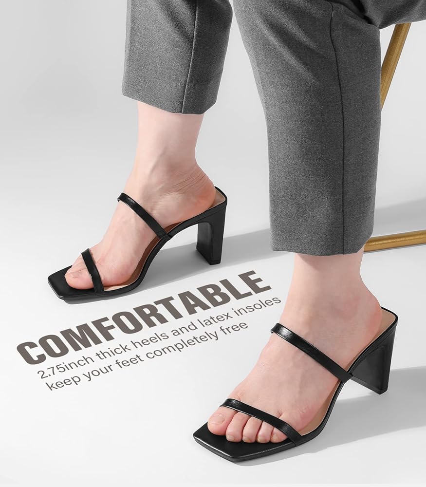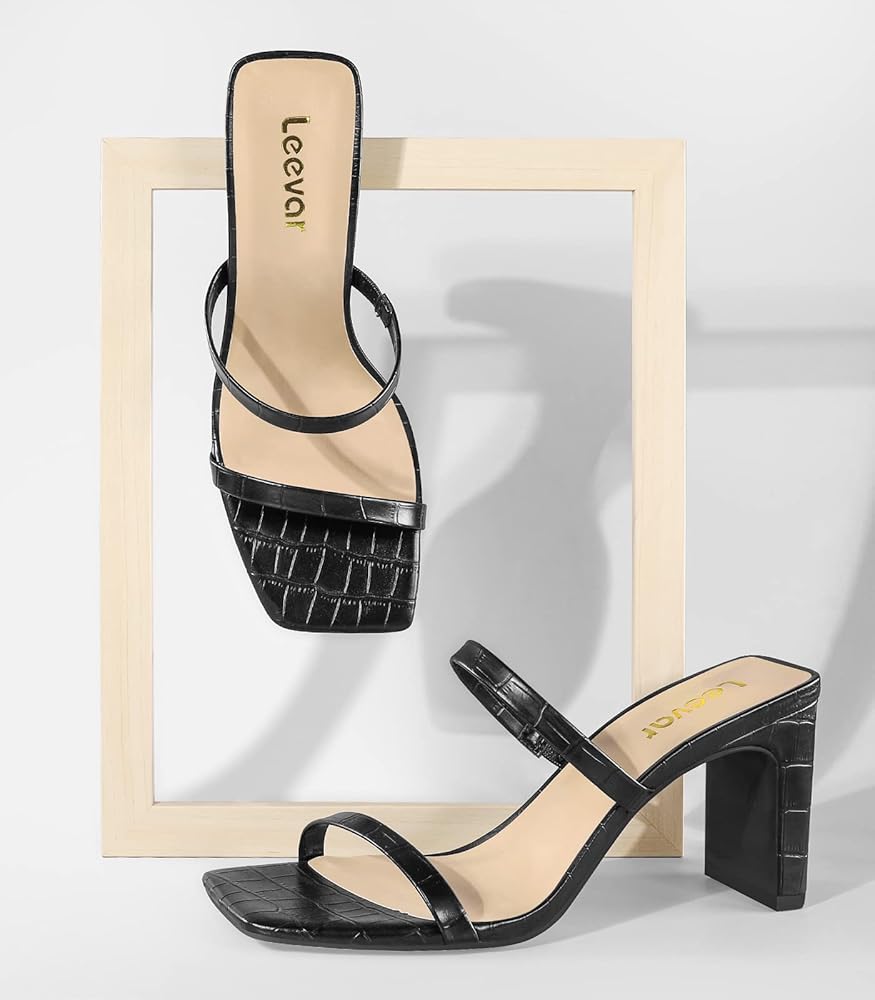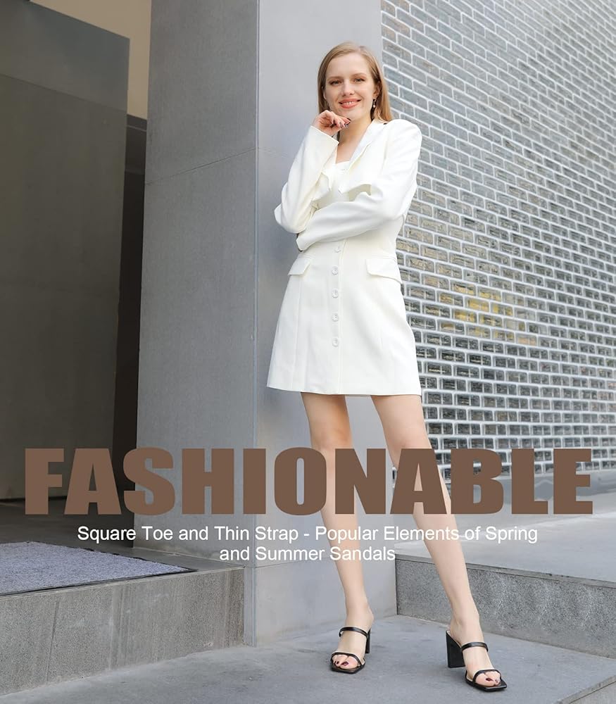 • Must-have Trendy Sandal: Leevar black block heeled sandals take two of this summer's favorites elements: square toes and thin straps. Compared with the common round head and pointed design, the square head design is more avant-garde and unique, with a combination of rigidity and softness; the thin straps is more delicate and fashionable.
