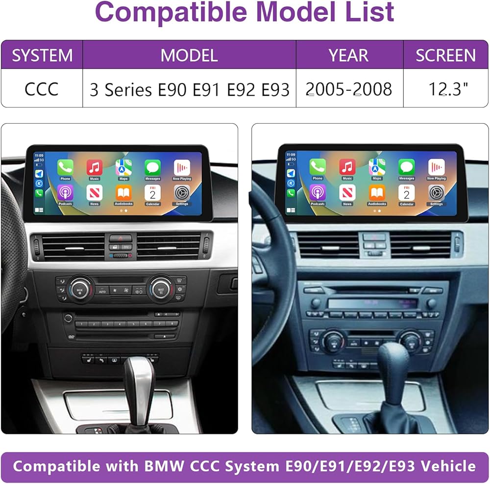 جهاز استقبال راديو السيارة من NINETOM مقاس 12.3 بوصة يعمل باللمس لاسلكي CarPlay Android Auto الوسائط المتعددة لنظام BMW 3 Series CCC، E90/E91/E92/E93 (2005-2008)