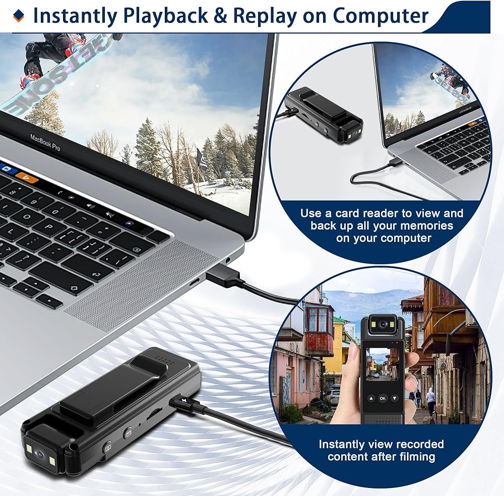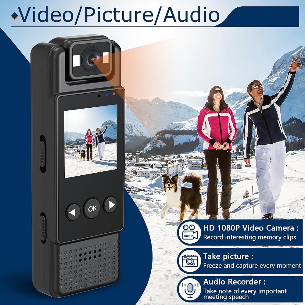 • كاميرا الجسم الصغيرة المحمولة HD 1080P: تتميز كاميرا الفيديو الصغيرة المحمولة هذه بدقة HD 1080P وشاشة LCD مقاس 1.3 بوصة تلتقط كل التفاصيل وتضمن جودة بصرية عالية الوضوح، مما يوفر تسجيل فيديو حيوي وواضح. مثالي لمجموعة متنوعة من الأنشطة: السفر، والمشي لمسافات طويلة، والتزلج، والتخييم، والرياضة مثل ركوب الدراجات، والسجلات المهمة مثل الاجتماعات والفصول الدراسية والأمن الداخلي والخارجي، والسلامة الشخصية، وإنفاذ القانون.