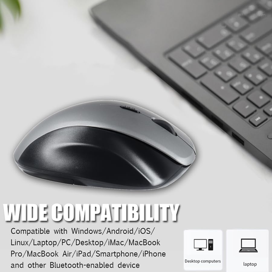 • ☀[اتصال وتوافق متعدد الوظائف] يعتمد فأرة الكمبيوتر اللاسلكية الخاصة بنا للكمبيوتر المحمول اتصال بلوتوث + لاسلكي ثنائي الوضع، والذي يمكن توصيله بمجموعة متنوعة من الأجهزة، بما في ذلك iPad، ويتيح لك اتصال Bluetooth التخلص من مشاكل الواجهة، 2.4 تقنية النقل G هي التوصيل والتشغيل. سيكون هذا الماوس المريح القابل لإعادة الشحن بمثابة أداة إنتاجية متعددة الوظائف أثناء التنقل، وهو مساعد جيد للعمل المكتبي