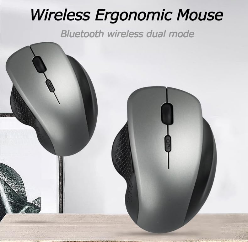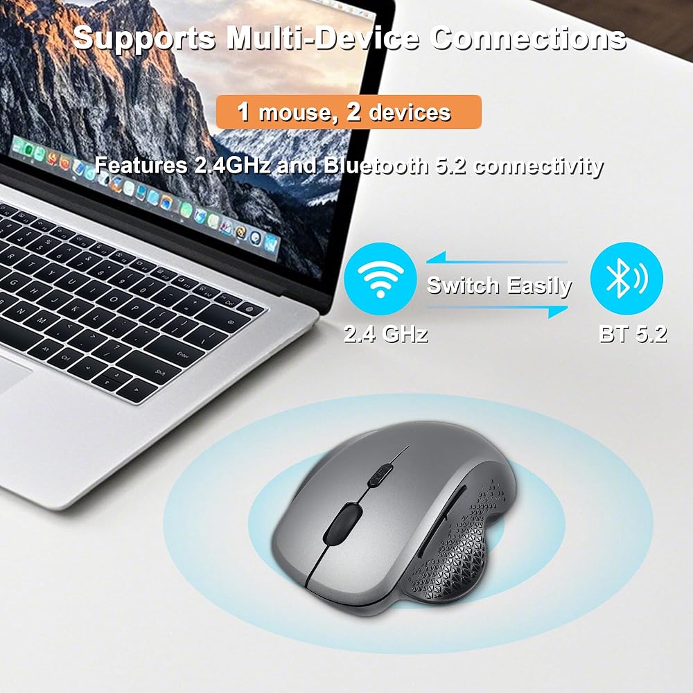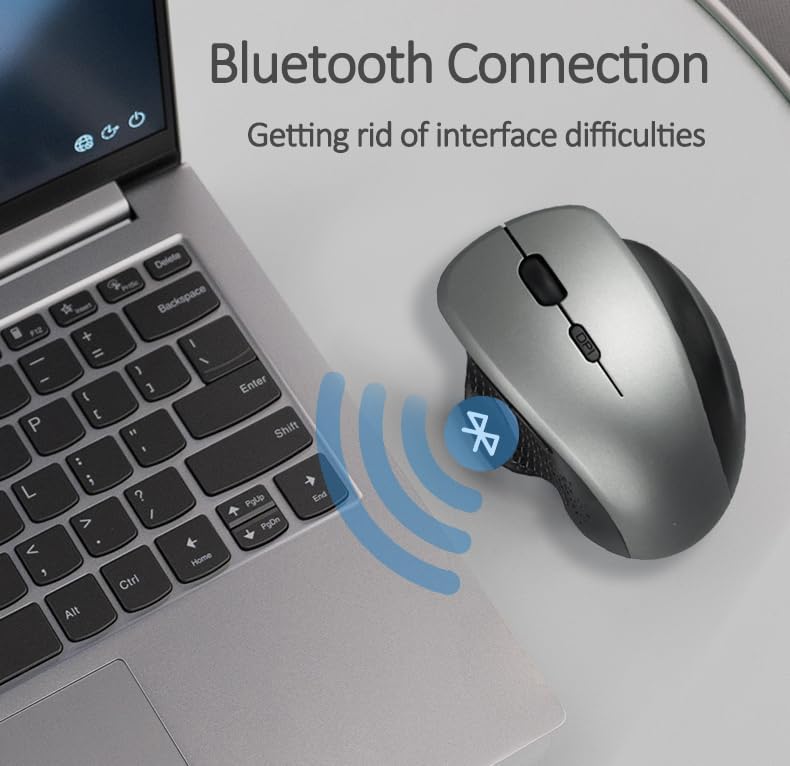 ماوس لاسلكي رأسي مريح يعمل بتقنية البلوتوث، ماوس لاسلكي بصري مزدوج الوضع قابل لإعادة الشحن مع 3 نقطة في البوصة (800-1200-1600)، ماوس كمبيوتر مريح وصامت وقابل للحمل لأجهزة الكمبيوتر المحمول وأجهزة الكمبيوتر المحمول وأجهزة Macbook