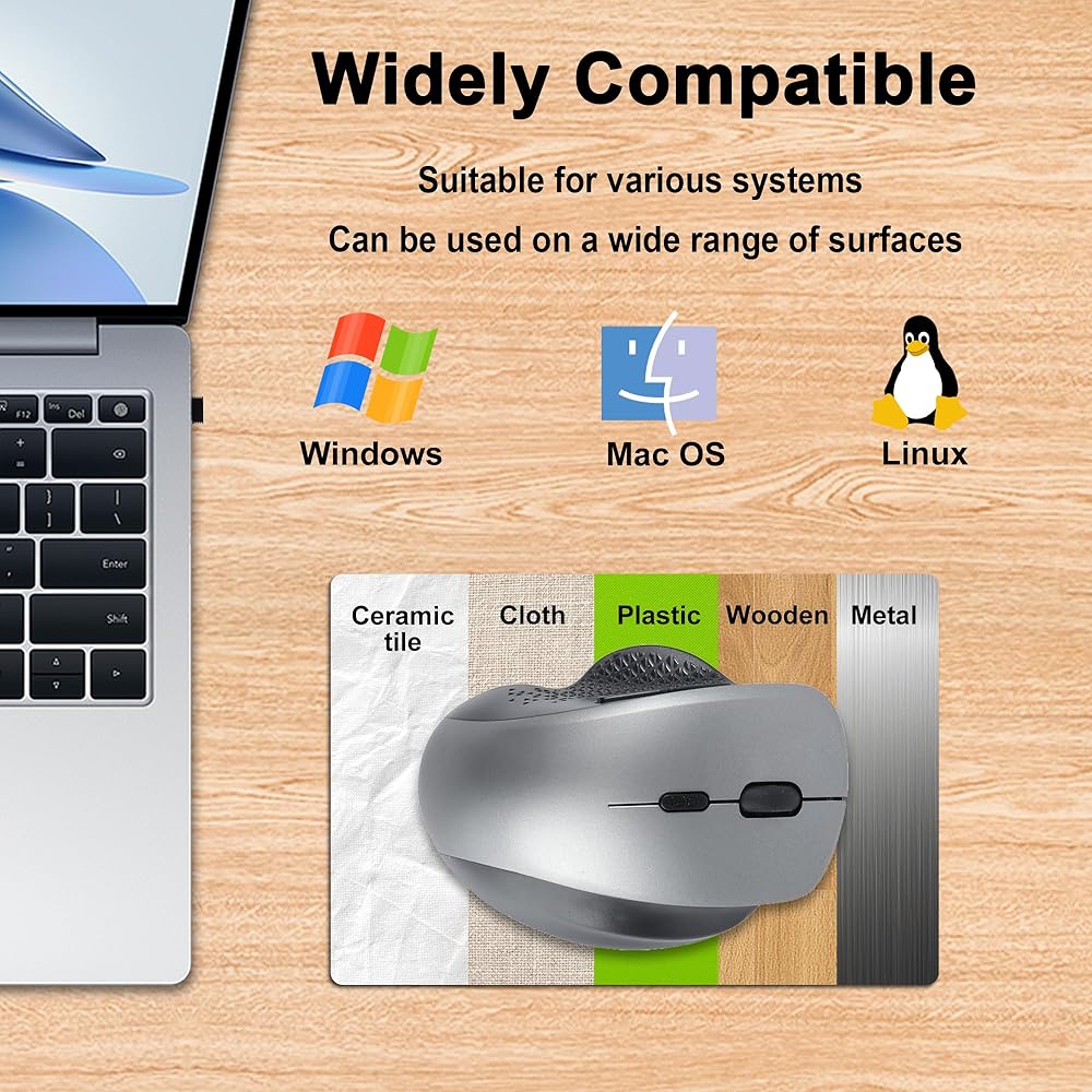 • ☀ 【متين & التوصيل والتشغيل】تم اختبار هذا الماوس اللاسلكي بشكل احترافي لأكثر من 5,000,000 نقرة وهو متين لمدة تصل إلى 5-10 سنوات. لا تحتاج إلى تثبيت أي برامج تشغيل إضافية، فقط قم بتوصيل ماوس الكمبيوتر المحمول اللاسلكي بجهاز الكمبيوتر الخاص بك وستكون جاهزًا للانطلاق! هذا الفأر العمودي هو هدية مثالية لعيد الميلاد للنساء والرجال والجد والجدة والأم والأب والزوجين والصديقة والفتاة والزوجة والزوج والأخت والأخ.