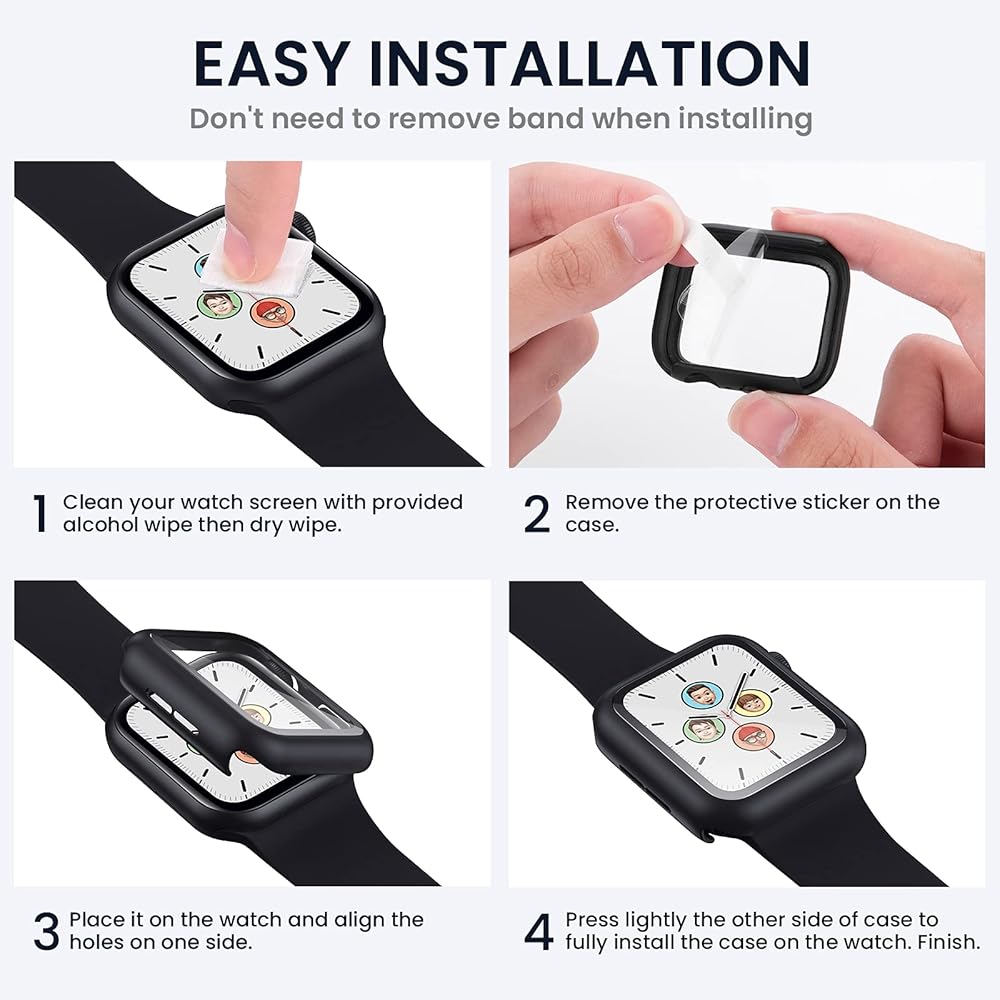 【حماية كاملة】غطاء الوجه المتوافق مع iWatch مقاس 41 مم والذي يمكنه حماية ساعتك من الغبار والأوساخ والخدوش والأضرار. لا يؤثر واقي الشاشة الزجاجي المقوى 9H على حساسية اللمس. علبة الساعة سهلة التركيب دون إزالة السوار