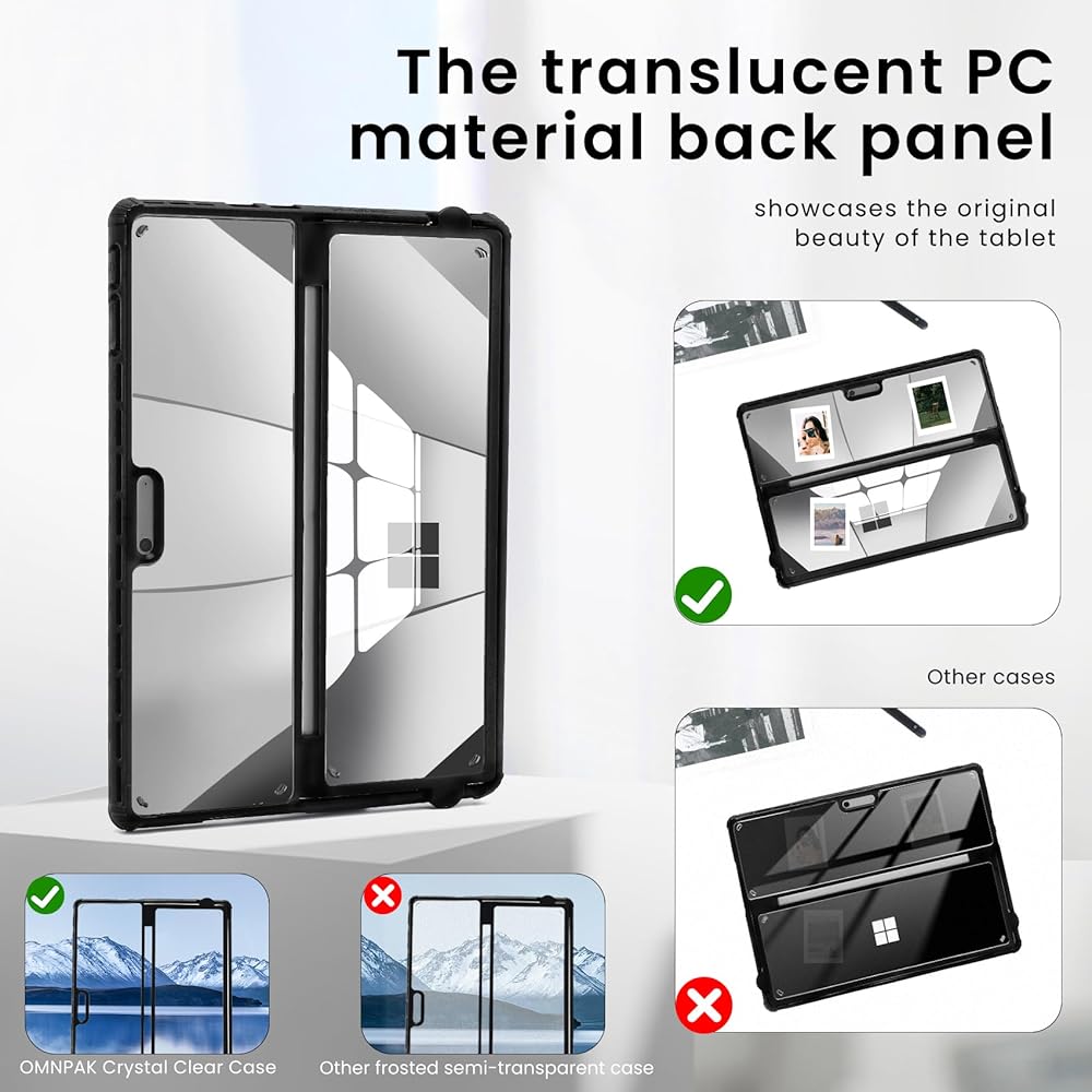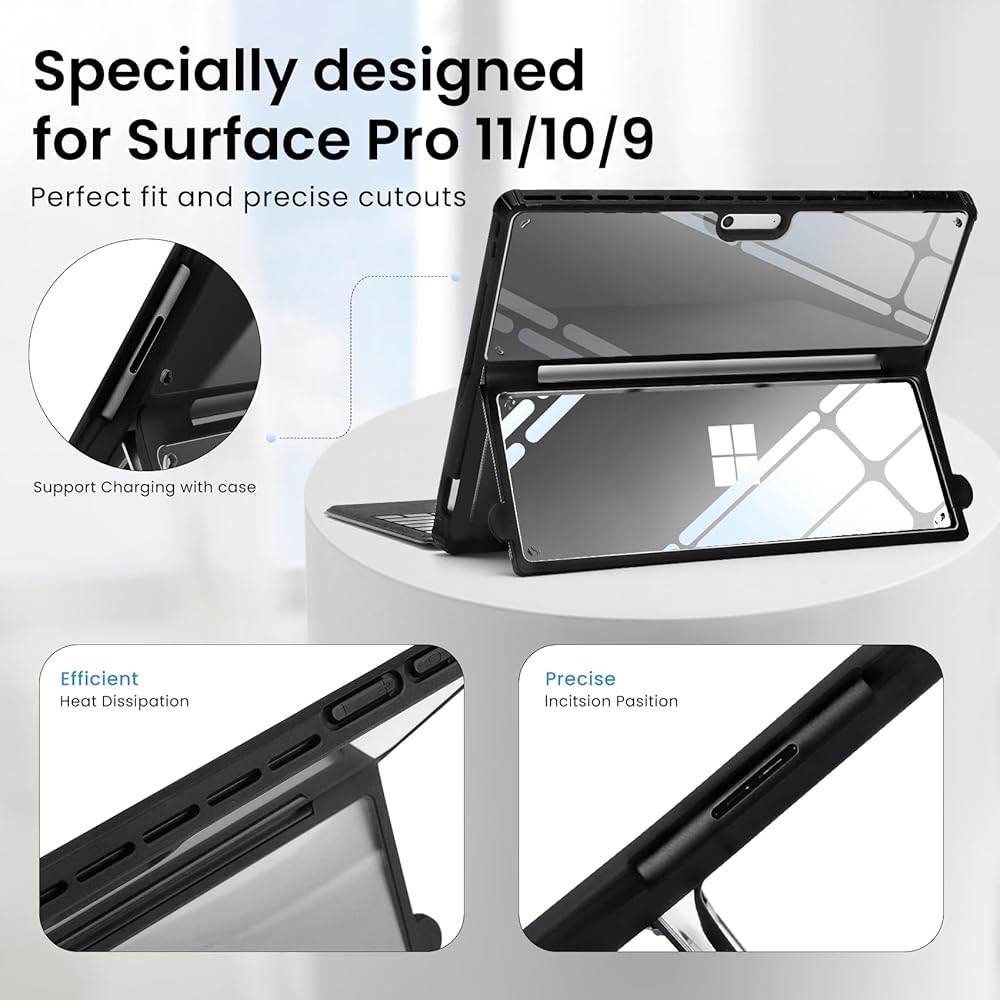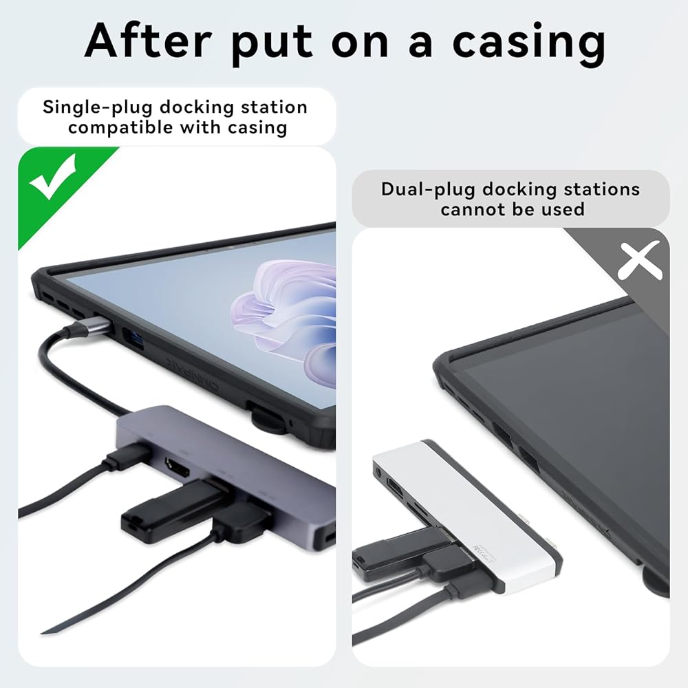 【تصميم حصري】مصمم لجهاز Surface 11th Edition AI 2024/Surface Pro 10 للأعمال/Surface Pro 9 2022. يعمل مع أو بدون لوحة مفاتيح غطاء من نوع Surface pro. بعد وضع الغلاف، لا تكون محطات الإرساء ذات القابس المزدوج متوافقة، ولكنها متوافقة مع محطات الإرساء ذات القابس الواحد.
