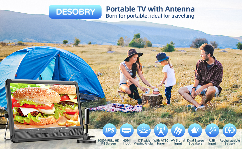 ☀ تلفزيون محمول مع هوائي وحامل، تم تصميم تلفزيون DESOBRY الصغير المحمول ليكون خفيفًا وصغير الحجم، ويناسب بسهولة مساحتك الشخصية. يحتوي على هوائي مساعد قابل للفصل ووظيفة بحث تلقائي للمساعدة في العثور على القنوات التلفزيونية بسرعة حتى تتمكن من الاستمتاع بالتلفزيون في الخارج. بالإضافة إلى ذلك، يحتوي تلفزيوننا الصغير على حامل متعدد الإمكانات يسهل وضعه على الطاولة لمشاهدة مقاطع الفيديو دون الحاجة إلى التثبيت والإزالة. يمكنك أيضًا استخدام حامل مسند الرأس في السيارة لتحرير يديك وجعل السفر أكثر متعة!