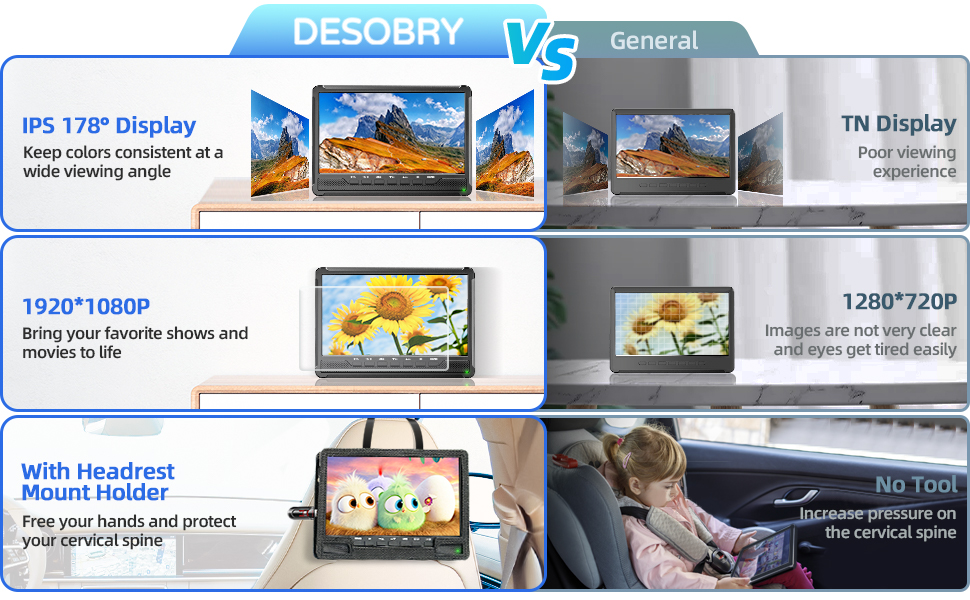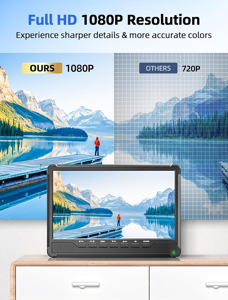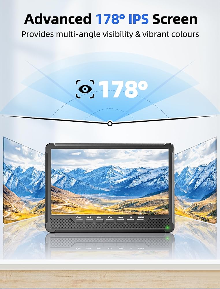 ✨[شاشة IPS عالية الدقة بالكامل] يتكون التلفزيون الصغير من شاشة IPS مقاس 10.5 بوصة بدقة 1920*1080، وتوفر زاوية عرض 178 درجة، واضحة بنفس القدر في زوايا مختلفة. يقدم تلفزيون DESOBRY المحمول ألوانًا دقيقة ومشرقة مقارنة بشاشات VA وTN، ويجذبك إلى الفيديو أو اللعبة بألوان نابضة بالحياة وتفاصيل مذهلة. يمكنه تقليل الضرر الناتج عن إشعاع الضوء الأزرق بشكل فعال دون وميض وحماية عينيك، مما يجعل من السهل عليك المشاهدة لفترة طويلة.