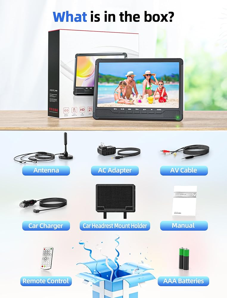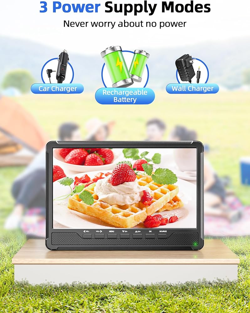 تلفزيون ديسوبري 11.5 بوصة محمول مع هوائي Atsc Tune، شاشة 10.5 بوصة HD IPS قابلة لإعادة الشحن مع مكبر صوت مزدوج، تلفزيون صغير يدعم مدخل HDMI USB RCA، تلفزيون يعمل بالبطارية لسيارة التخييم المطبخ