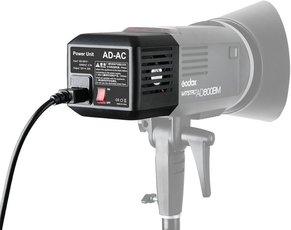 GODOX AD-AC محول مصدر الطاقة AC مع كابل 16.4 بوصة/5 متر لـ Godox AD600 AD600B AD600M AD600BM Flashpoint، XPLOR 600 فلاش ستروب لايت