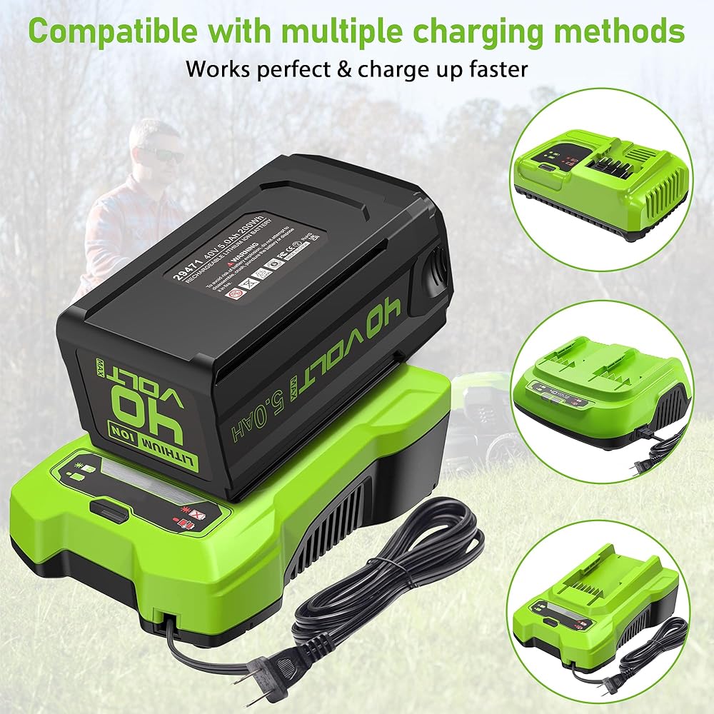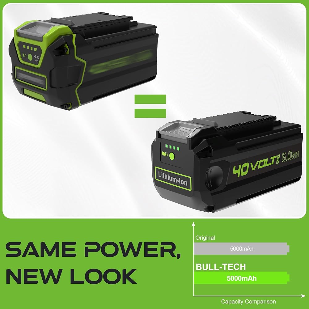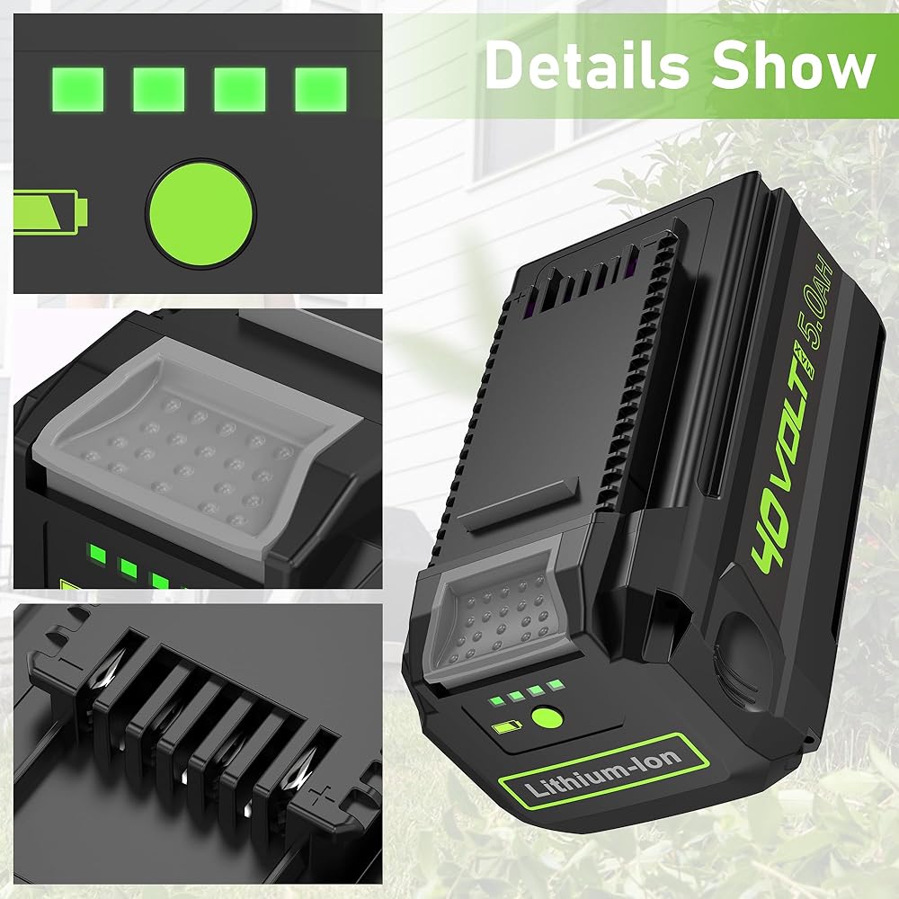 استبدال بطارية جديدة 40 فولت 5000 مللي أمبير في الساعة لبطارية ليثيوم أيون Greenworks 40 فولت 5.0 أمبير في الساعة، متوافقة مع جميع أدوات Greenworks 40 فولت.