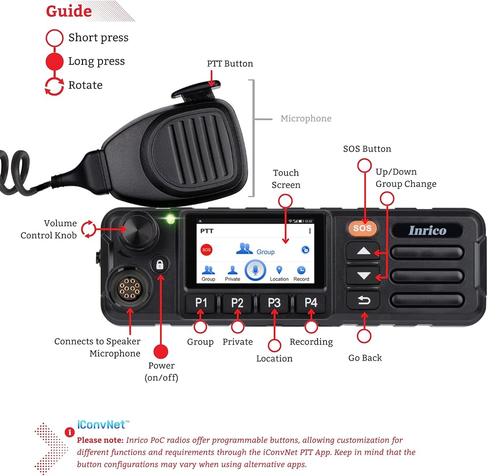 • Works with a variety of PTT Apps, including: iConvNet, Zello, Real-PTT, Walkie Fleet, PoC Star, TeamVox, etc.