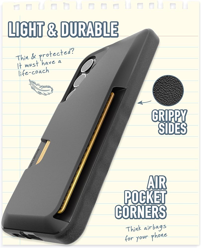 𝗖𝗔𝗠𝗘𝗥𝗔, 𝗦𝗖𝗥𝗘𝗘𝗡 & 𝗖𝗢𝗥𝗡𝗘𝗥 𝗣𝗥𝗢𝗧𝗘𝗖𝗧𝗜𝗢𝗡 - تم اختباره ضد السقوط : 50 قطرة على ارتفاع 6 أقدام على الخرسانة - تخضع حافظات الهاتف الذكية لاختبارات سقوط صارمة لضمان حماية قوية. توفر زوايا الجيب الهوائي امتصاصًا للصدمات، حتى عند سقوطها من الزوايا الأكثر ضعفًا. مزود بحافة مرتفعة بمقدار 1 مم حول الشاشة والكاميرا، حتى تتمكن من وضع جهاز Galaxy الخاص بك بشكل مسطح على كلا الجانبين بثقة ولا داعي للقلق بشأن خدوش الشاشة أو الكاميرا.
