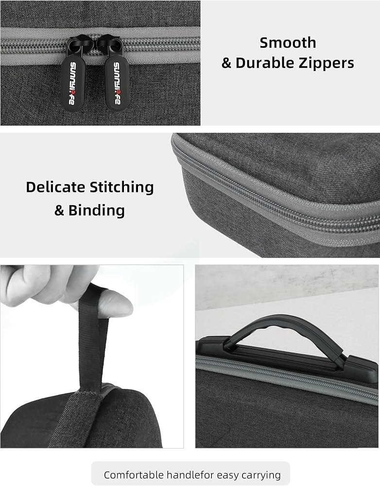 【SUPERIOR PROTECTION】Camera storage case is made of hard shell durable material and lined with soft suede for shock resistance, the soft interior suede Mini 4 Pro provides excellent protection against unpredictable bumps, scratches and other damage. The soft interior suede lining and hard durable shell provide the perfect balance of sturdiness and cushioning to protect the contents from damage, both indoors and outdoors.