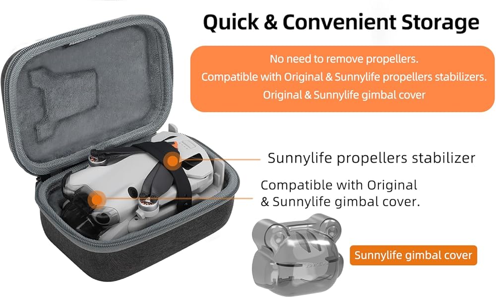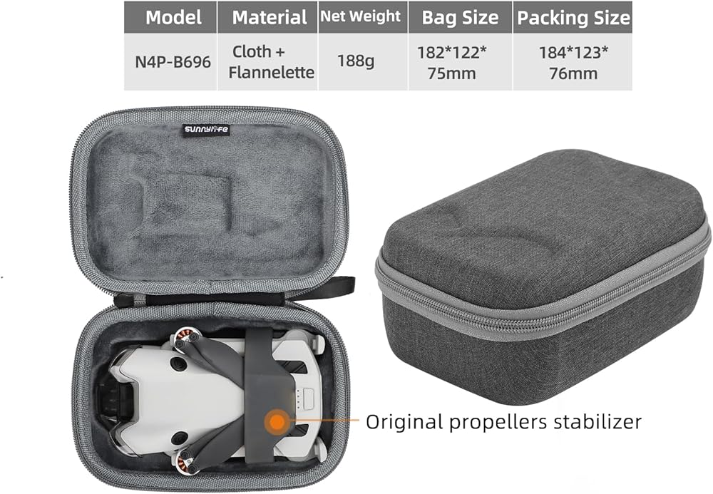 Designed for DJI Mini 4 Pro, Outer dimensions of Storage bag size: 7.16*4.80*2.95 in.Please measure your DJI drone model and check the size before ordering.