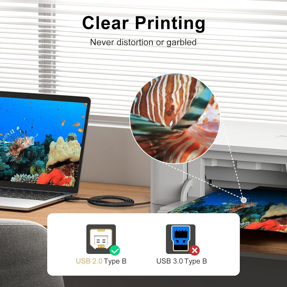 ✔️Gold-plated printer cord connectors to eliminate signal loss and noise possible