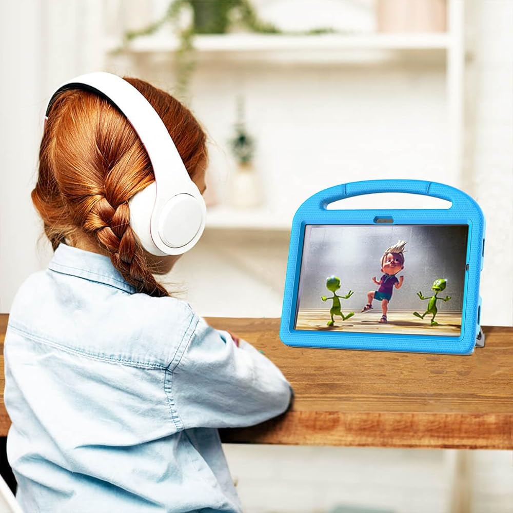تم تصميم المقبض المضاد للانزلاق ليسهل على الأطفال حمله. تتيح المساند المدمجة سهولة الوصول إلى برامجك وأفلامك وألعابك المفضلة أثناء التنقل