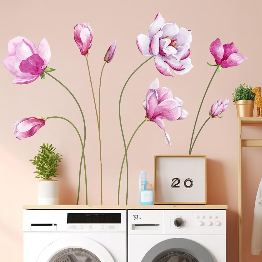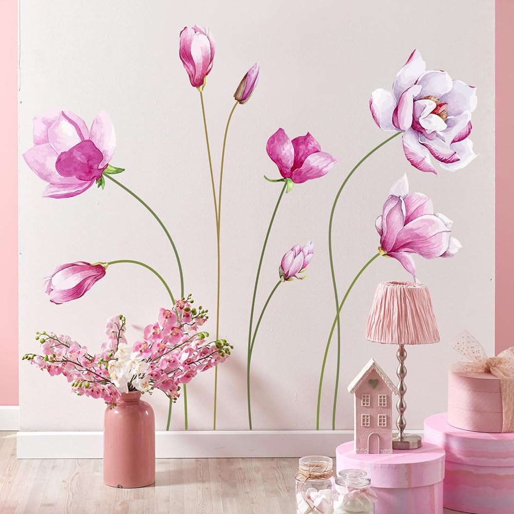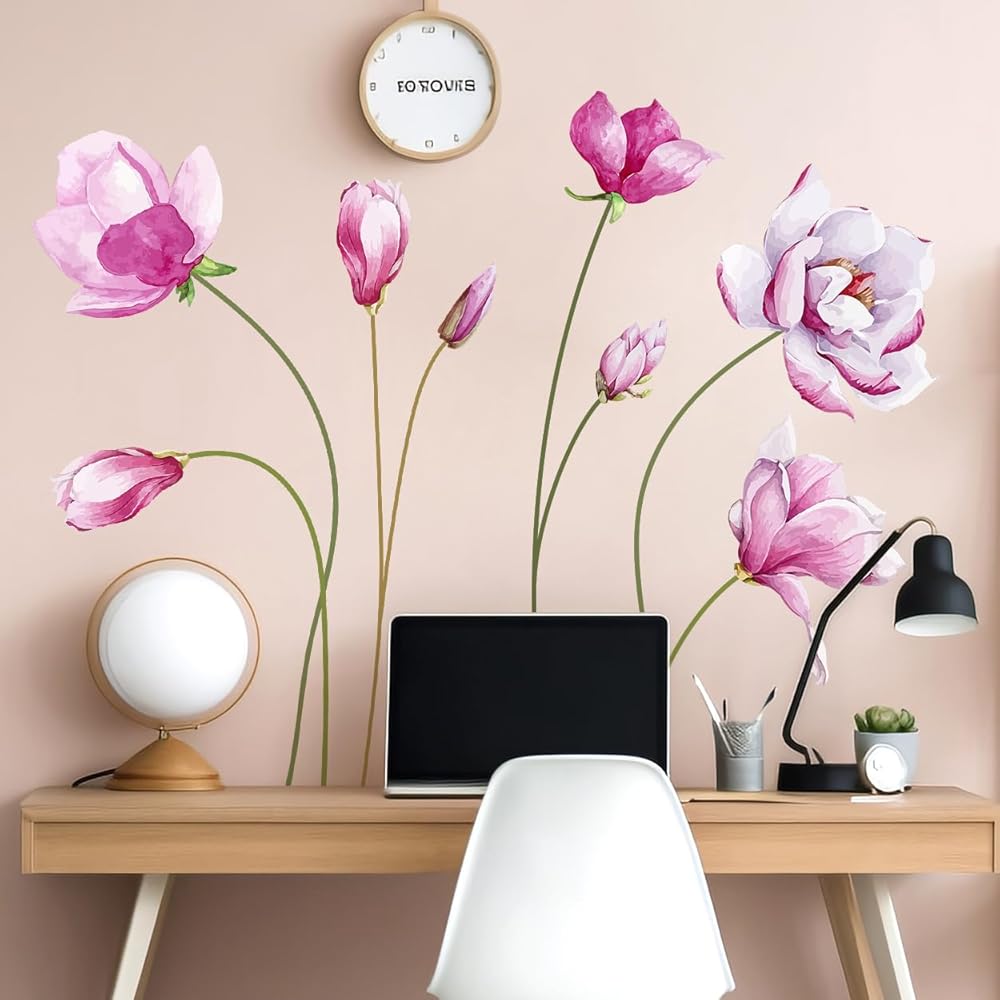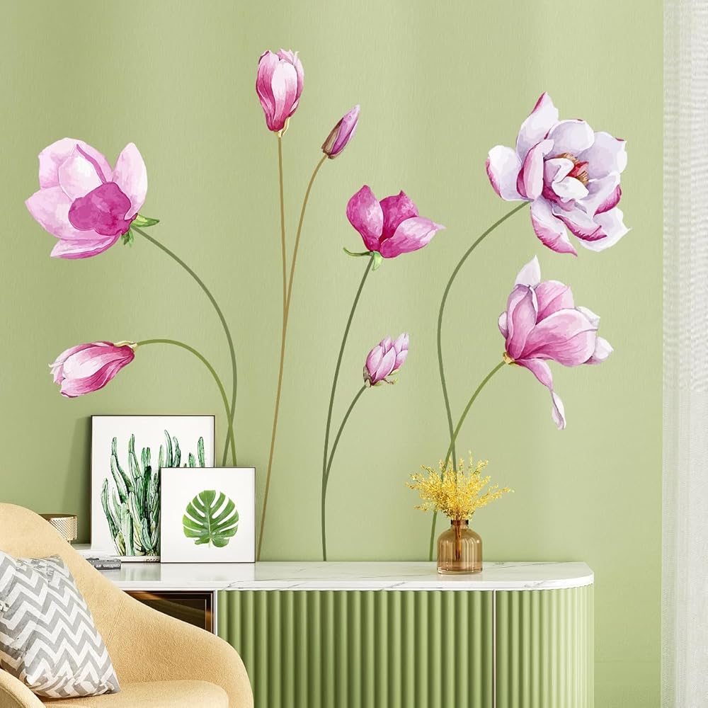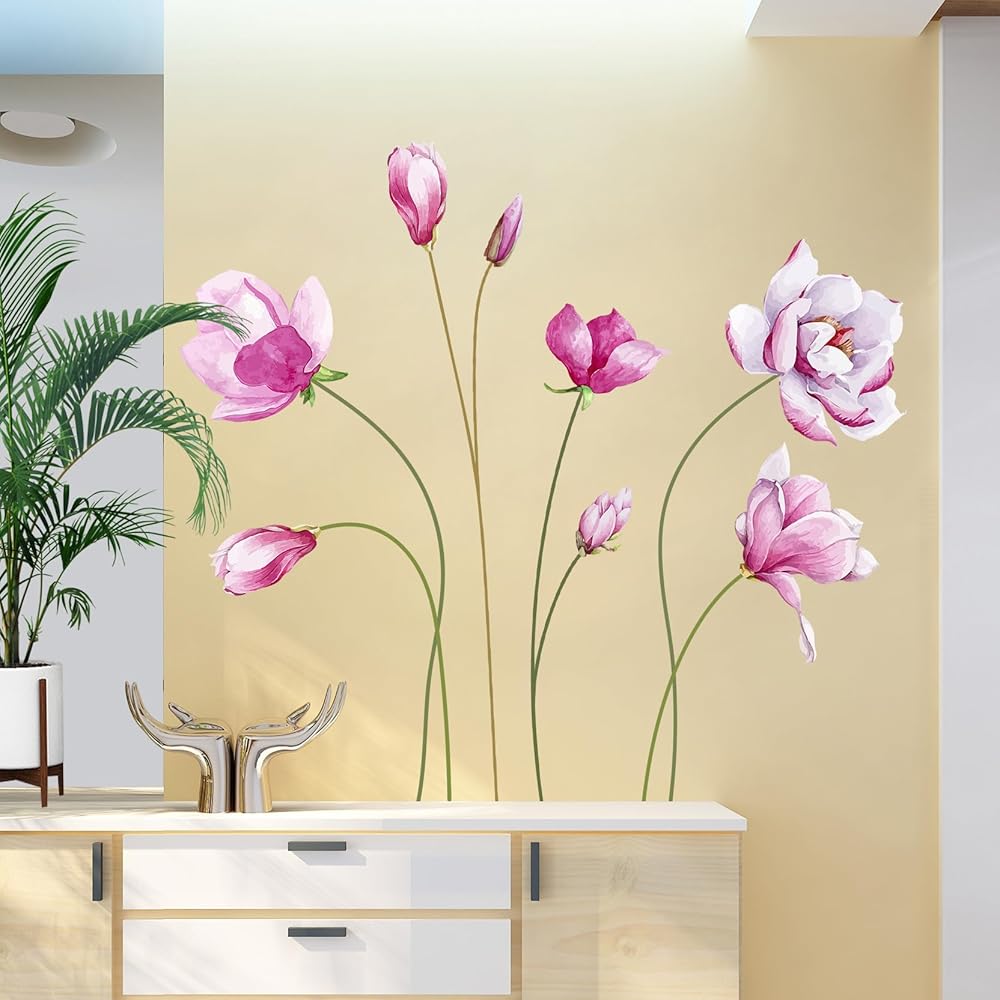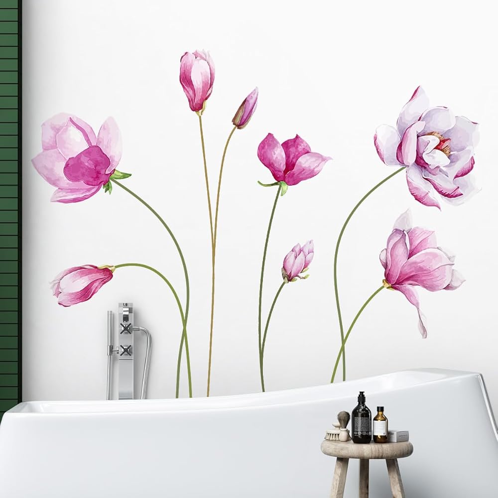 Pink lotus wall stickers: Our elegant lotus wall stickers are made of high quality vinyl, friendly and waterproof. Easy to use and remove without leaving residue or damaging walls. The vibrant colors make the lotus very lifelike, blooming and budding lotus lifelike is a beautiful home wall art decoration.