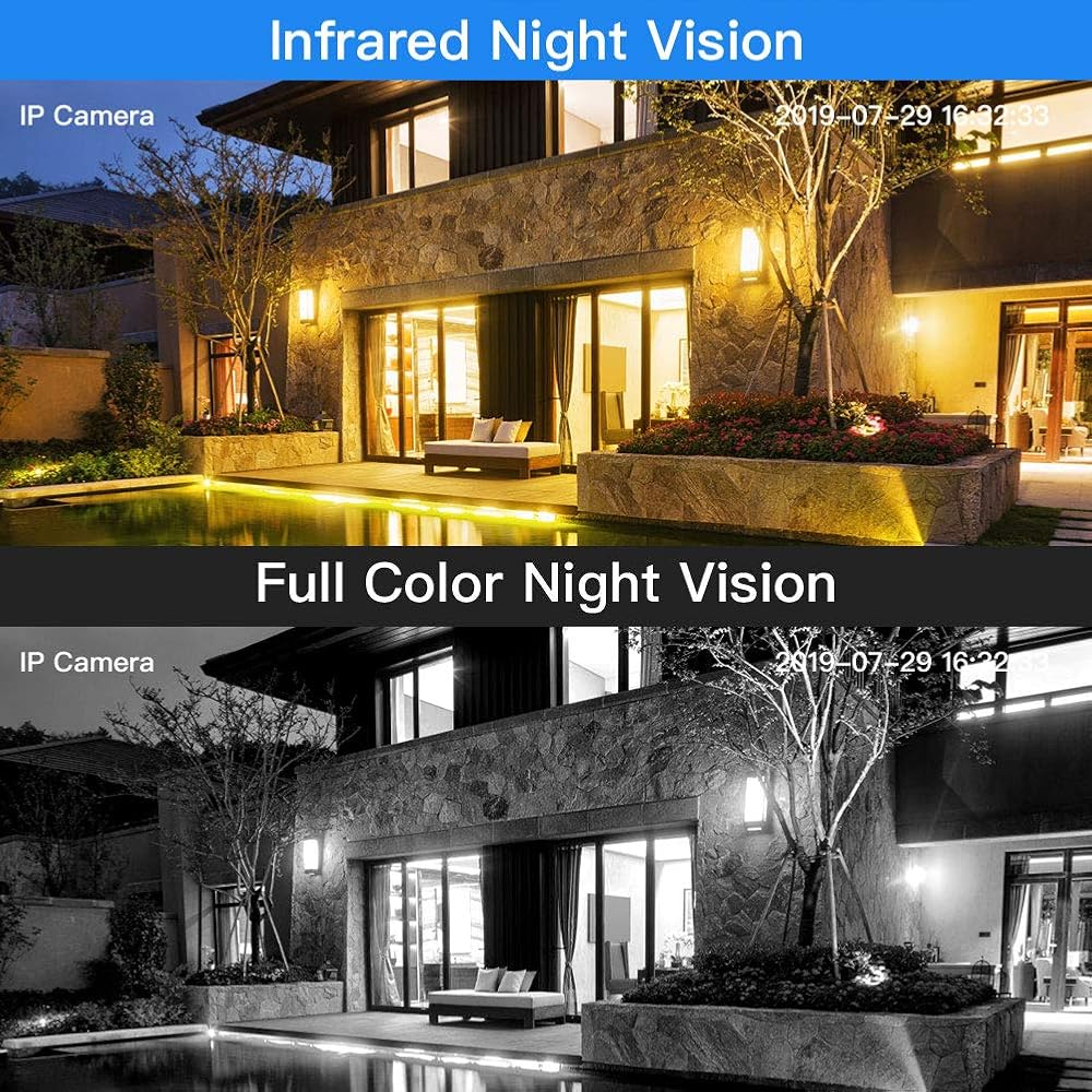 • 【Ultra HD 5.0MP ورؤية ليلية ملونة 】 الجميع يريد أن يراقب ما يقلقه في جميع الأوقات. مع دقة FULL HD 5.0MP (2560(H)x1920(V))، مدمجة في 4 قطع من مصابيح LED الفعالة للأشعة تحت الحمراء و4 قطع من مصابيح LED البيضاء، توفر لك فيديو واضح وجميل في النهار/الليل. حماية منزلك/مكتبك/عملك 7*24. سوف تحتاج إلى واحدة لمدخل الفناء الأمامي والجراج والفناء الخلفي وحديقتك الجميلة.