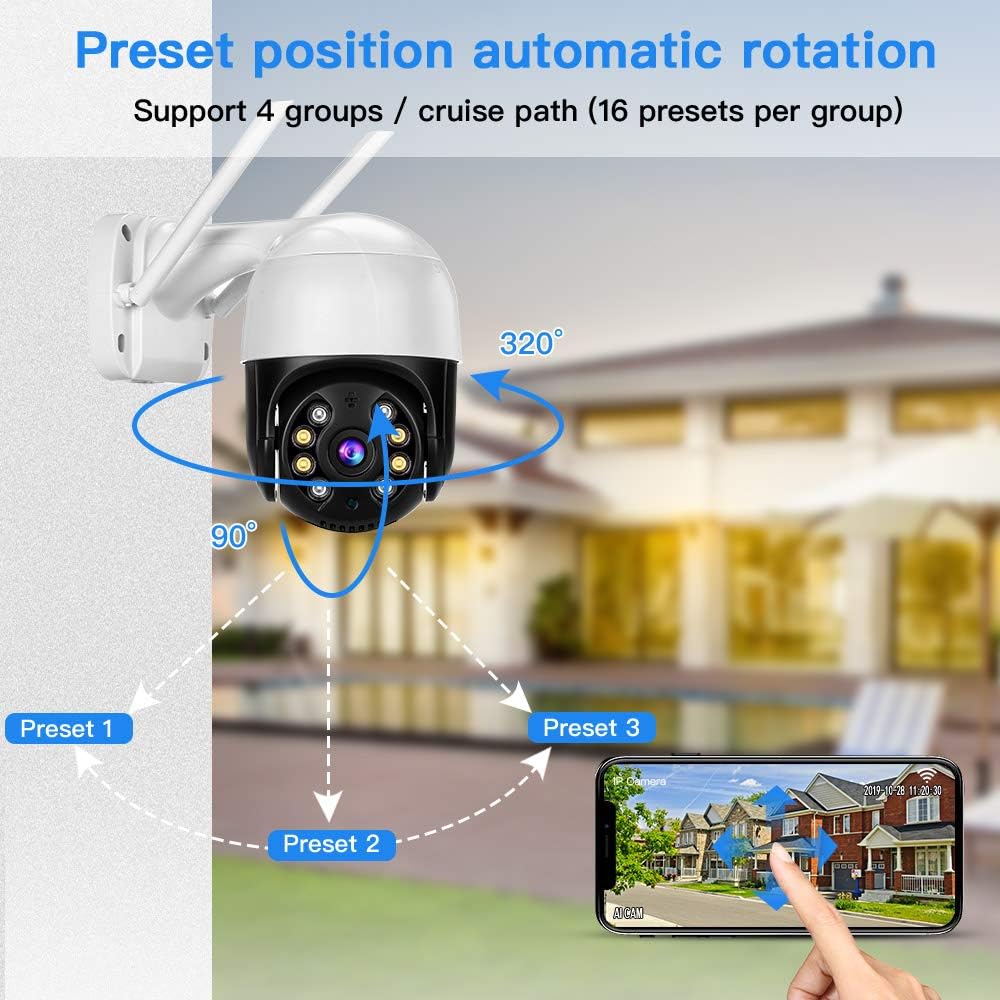 كاميرا مراقبة EVERSECU خارجية PTZ، 5.0 ميجابكسل منزلية 2.4 جيجا هرتز واي فاي IP كاميرا مراقبة، اتجاهين للكشف عن الحركة الصوتية للرؤية الليلية كاميرا CCTV خارجية تدعم بطاقة SD والتخزين السحابي