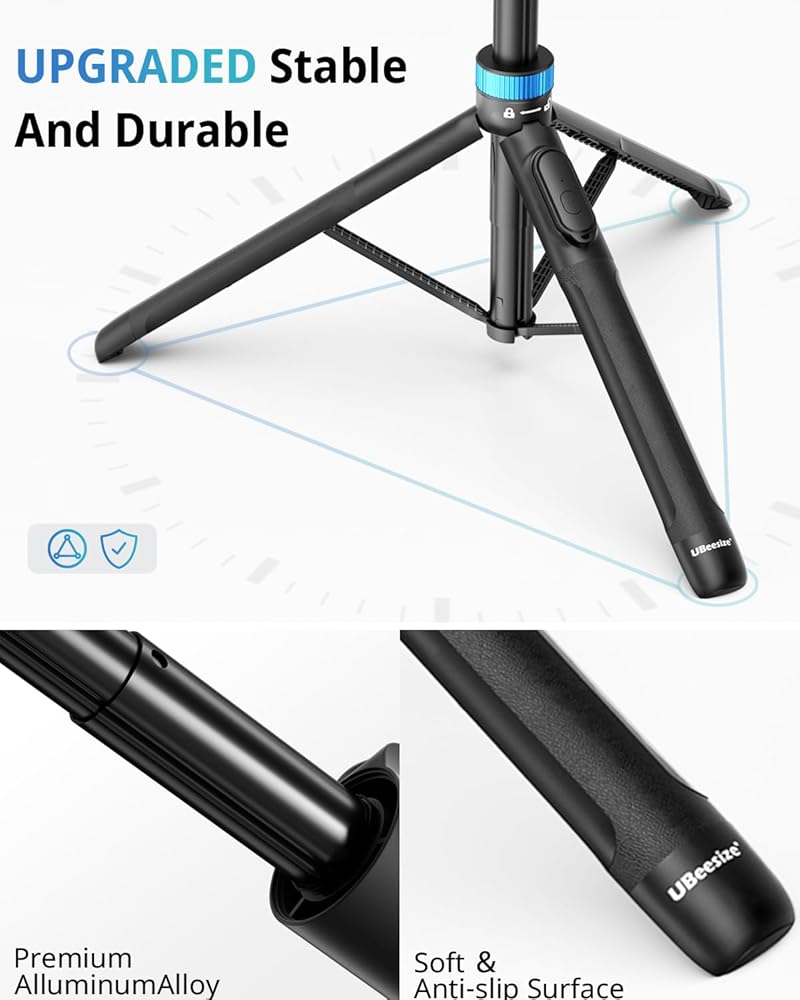 استقرار محسّن: قل وداعًا للقطات الباهتة والمهتزة. يوفر حامل عصا السيلفي ثلاثي القوائم الخاص بنا ثباتًا ممتازًا، مما يضمن لك التقاط صور ومقاطع فيديو واضحة وسلسة، حتى عند أقصى ارتفاع يبلغ 72 بوصة.