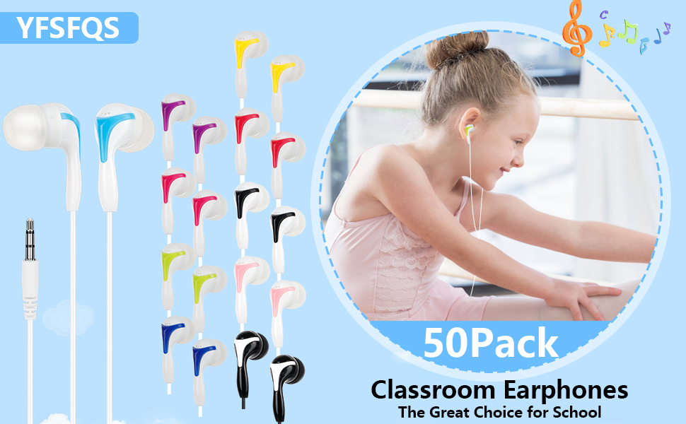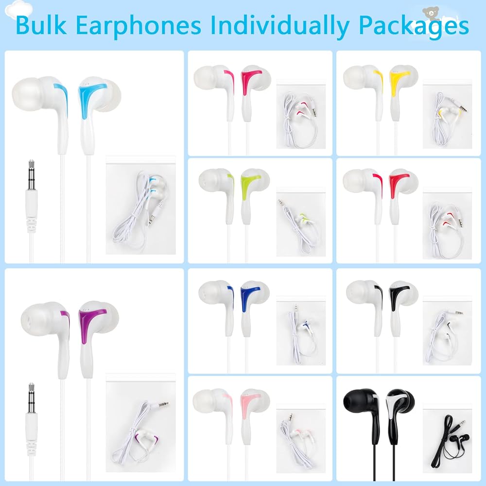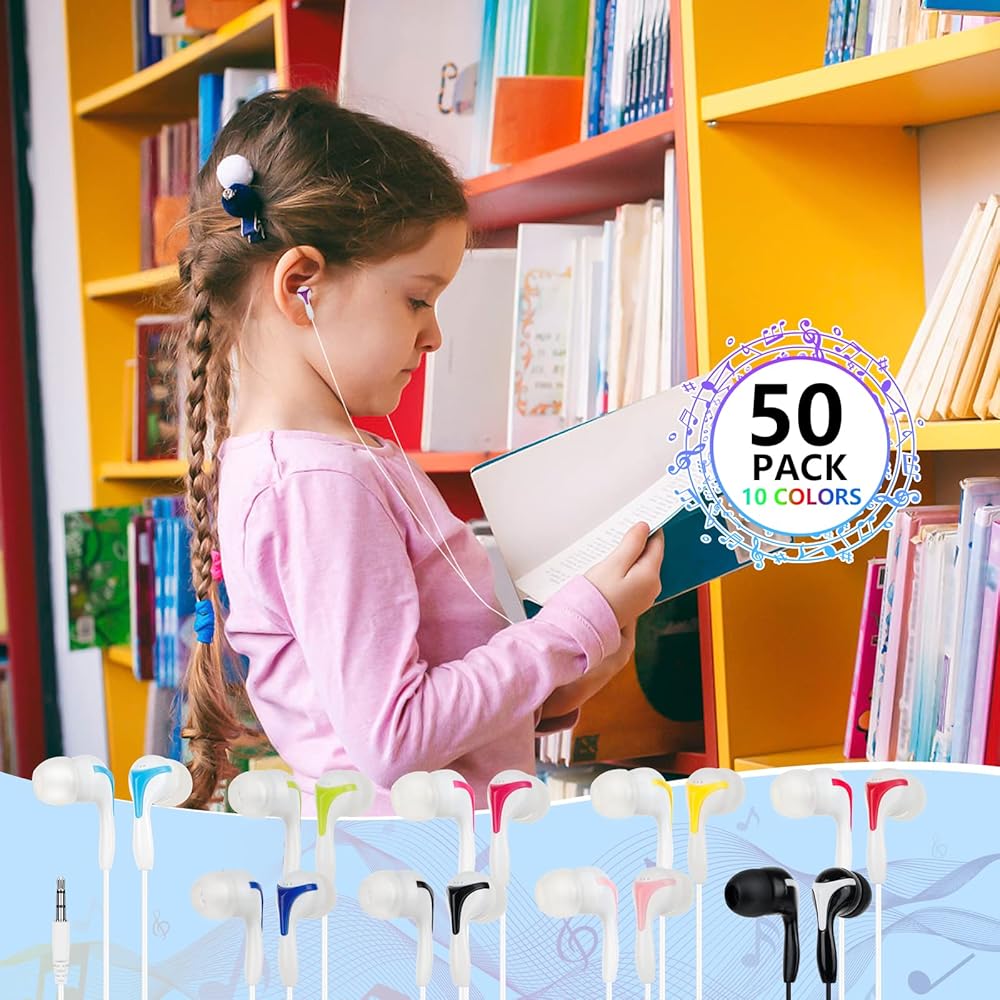 سماعات أذن للأطفال، 50 قطعة متعددة الألوان، معبأة بشكل فردي، سماعات أذن سلكية للاستعمال مرة واحدة بالجملة، مثالية لطلاب مكتبات الفصول المدرسية (10 ألوان Y)