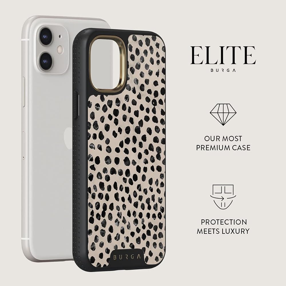 حافظة هاتف BURGA متوافقة مع iPhone 11 - نمط منقطة سوداء لاتيه اللوز - لطيفة ولكن قوية مع نظام الدفاع CloudGuard 2 في 1 - حافظة صلبة فاخرة مقاومة للخدش لهاتف iPhone 11