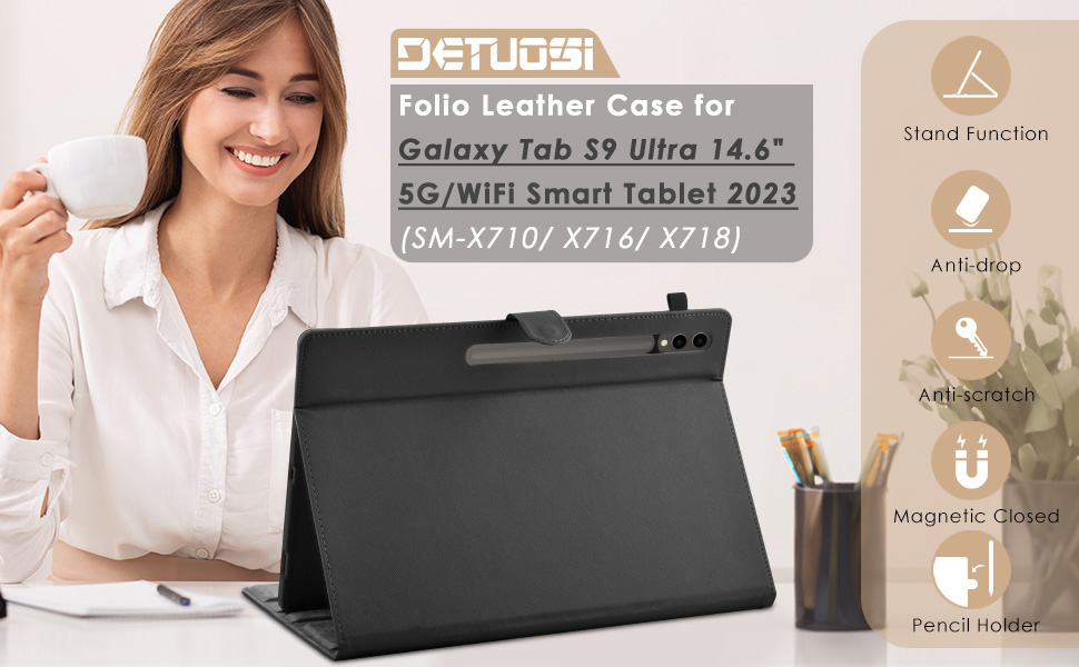 ✅ 【رؤية متعددة الزوايا】- غطاء كتاب Funda para Galaxy Tab S9 Ultra WiFi مقاس 14.6 بوصة يعمل بنظام Android يحتوي على أخاديد عميقة متعددة يمكنها ضبط زوايا الحامل الأفقية المتعددة. يعمل على إصلاح جهازك اللوحي بزاوية عرض مثالية أو في وضع مريح. ❤ نصائح ودية: لا يشتمل على واقي الشاشة/ قلم S/ /الكمبيوتر اللوحي/ لوحة المفاتيح. إذا كان المنتج الذي استلمته معيبًا (غير متضمن الضرر من صنع الإنسان)، فلا تتردد في حل المشكلة معنا
