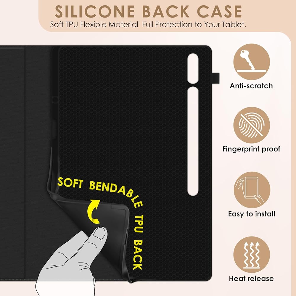 ✅ 【جراب عالي الجودة TAB S9 ULTRA 5G】- جراب Funda para Samsung Galaxy Tab S9 Ultra 5G Tablet 2023 مصنوع من جلد البولي يوريثان عالي الجودة وألياف دقيقة ناعمة، مقاوم للماء، متين ومقاوم. غطاء خلفي ناعم من مادة TPU يحمي الجهاز اللوحي من الصدمات والسقوط والتأثيرات