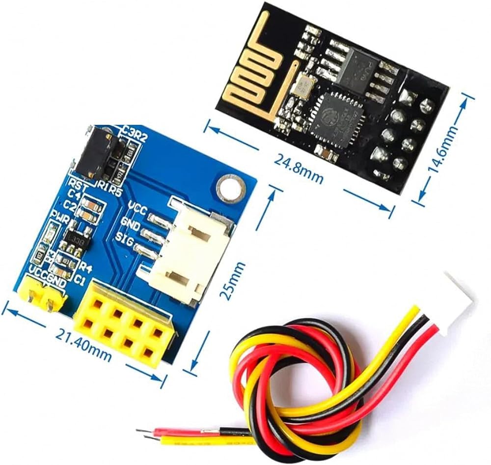 This is a WS2812 or WS2812B RGB LED controller based on the ESP-01 /ESP-01S. With this board, your will easy to make your colorful display project Feature:1. Main chip:ESP-01/ESP-01S(This board Not include the ESP-01/ESP-01S)2. Interface:3Pin PH2.0 for WS28123. Working voltage:DC 3.7V-5V (Support 3.7V Lipo battery)4. Usage:a. Power supply:3.7V Lipo battery connect to the VCC GND (2.54mm male header)b. Upload the code to ESP-01S(ESP-01)c. Plug the ESP-01S(ESP-01) to the moduleESP-01 module Features: 1. 802.11 b/g/n 2. Built-in Tensilica L106 ultra-low power 32-bit micro-MCU, main frequency support 80MHz and 160MHz, support RT0S 3. Built-in 10bit high precision ADC 4. Built-in TCP/IP protocol stack 5. Built-in TR switch, balun, LNA, power amplifier and matching network 6. Built-in PLL, voltage regulator and power management components with +20dBm output power in 802.11b mode7. Aggregation of A-MPDU and A-MSDU and protection interval of 0.4s 8. [email protected], supports the NPA/WPA2 security mode 9. Support AT remote upgrade and cloud OTA upgrade 10. Support STA/AP/STA+AP working mode 11. Smart Config support (including Android and iOS devices) HSPl, UART, I2C, |2S, IR Remote Control, PWM, GPIo 12. The deep sleep holding current is 10uA, and the turn-off current is less than 5uA13. Wake up, connect and deliver packets within 2ms, standby power consumption less than 1.0mW(DTIM3) 14. Operating temperature range: -40C-125C 15. The firmware version is 1.0.1, the default baud rate is 115200, (AT+C1 OBAUD= modifiable baud rate), because the previous version of the module is 512k bytes, the storage space is not enough, so you can not upgrade this 1.0.1 version, but the cloud service also supports!Package included:1 sets WS2812 Module + ESP8266 ESP-01 Module + 16 bits LED light ring