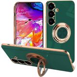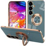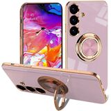 EYZUTAK حافظة حلقية مغناطيسية مطلية بالكهرباء لهاتف سامسونج جالاكسي S21 5G، 360 درجة مع دوران حلقة إصبع معدنية حامل مغناطيسي للسيارة غطاء حماية ناعم من السيليكون مقاوم للصدمات - أسود