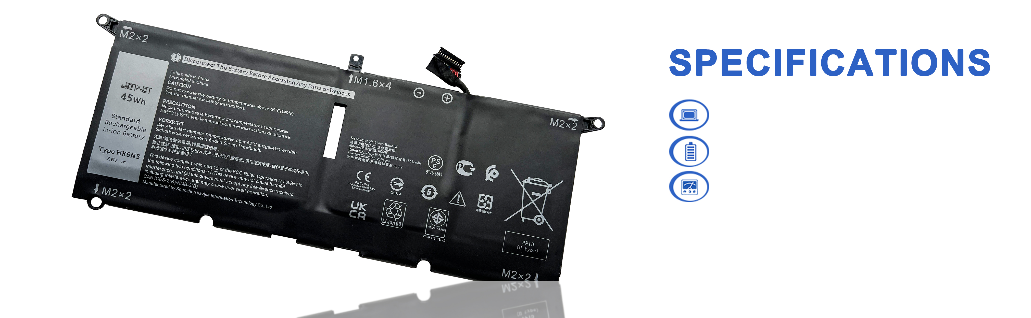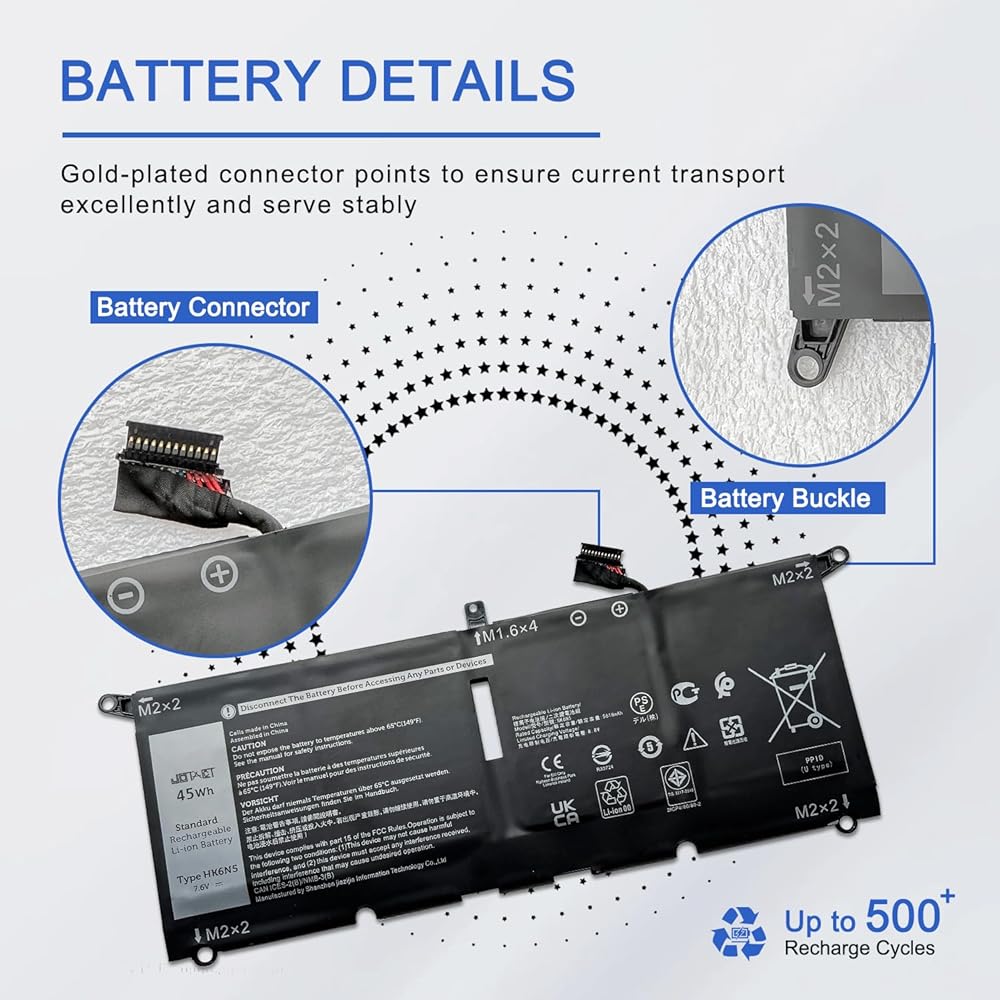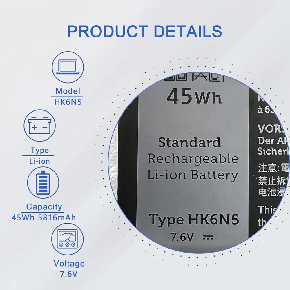 【المواصفات】نموذج المنتج: HK6N5؛ نوع المنتج: بطارية بديلة؛ نوع البطارية: ليثيوم أيون؛ الجهد االكهربى: 7.6 فولت؛ السعة: 45 وات/5618 مللي أمبير في الساعة؛ عمر البطارية: ما يصل إلى 500 دورة شحن طوال عمر البطارية.