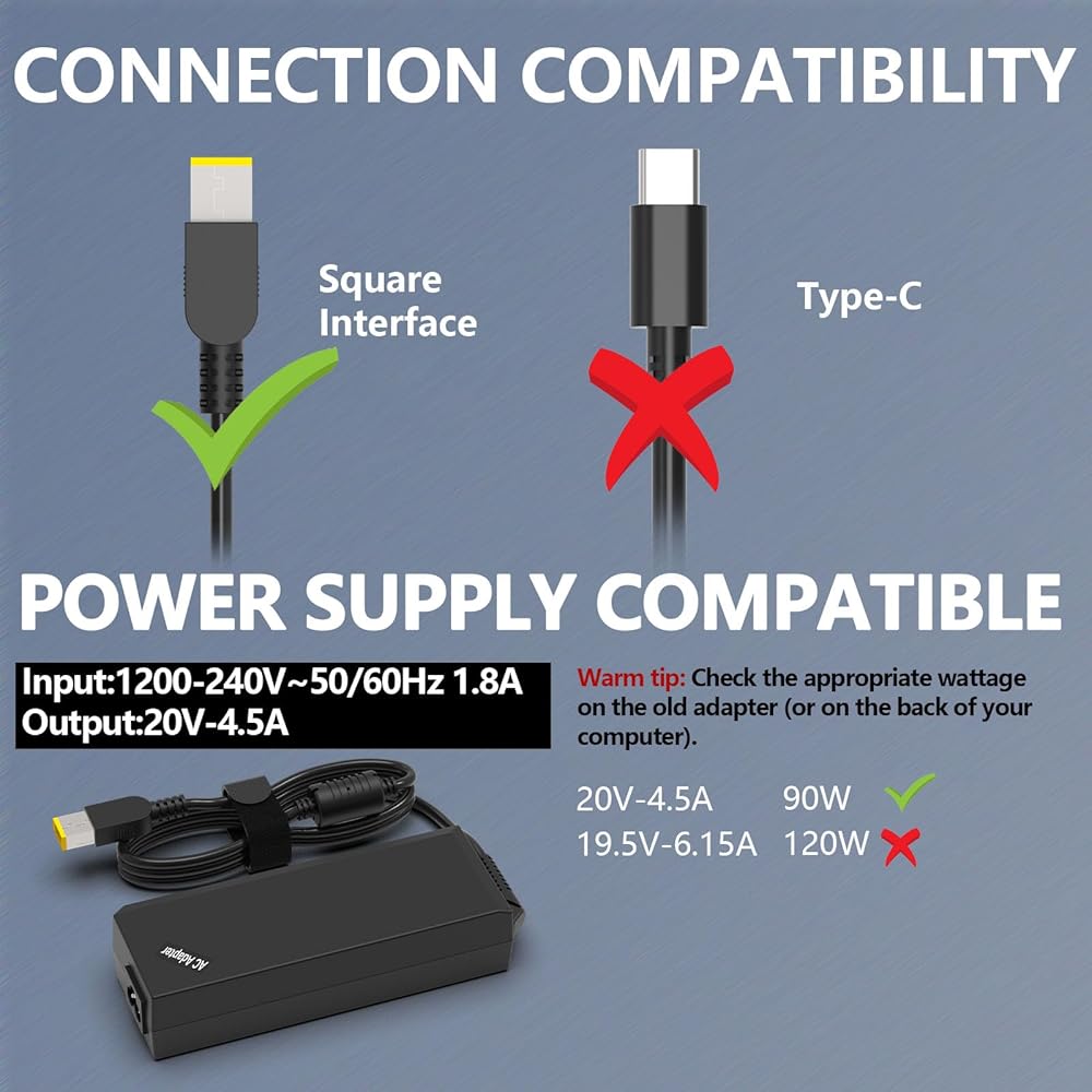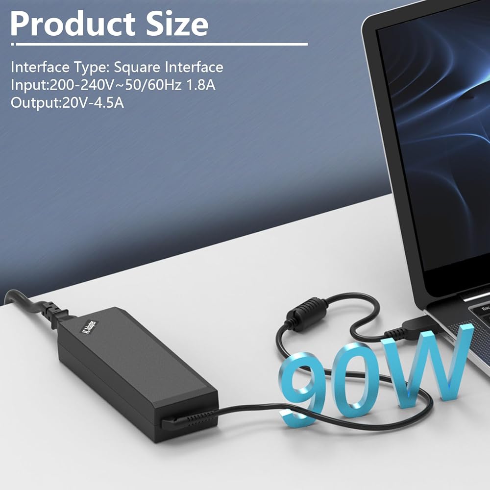 🔋【محول طاقة 90 وات】جهد الإدخال العالمي: 100-240 فولت 1.7 أمبير 50/60 هرتز، الخرج: 20 فولت 4.5 أمبير 90 وات، يرجى التحقق من الكمبيوتر المحمول الخاص بك للتأكد من رقم الطراز.