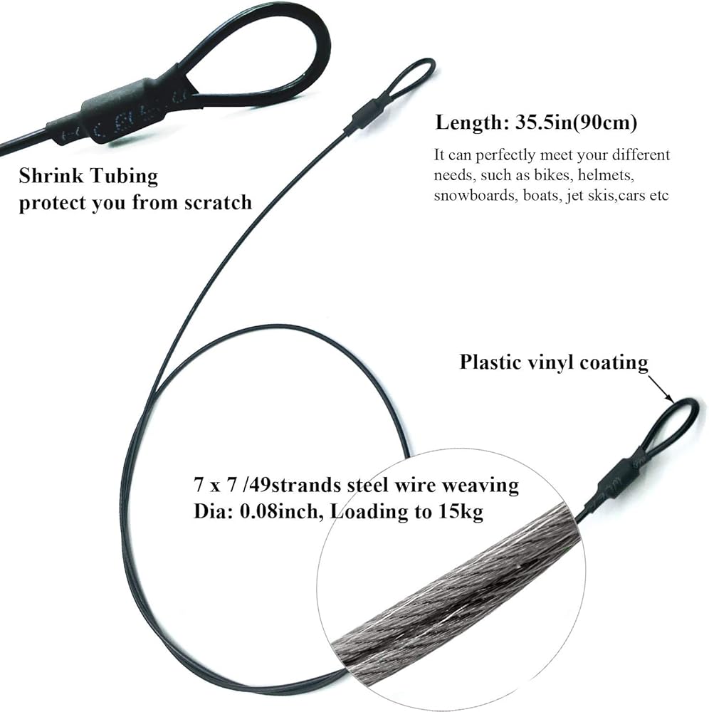 • Safety tether, 7 x 7 / 49strands steel wire weaving, Dia 0.08", breaking force up to 15kg