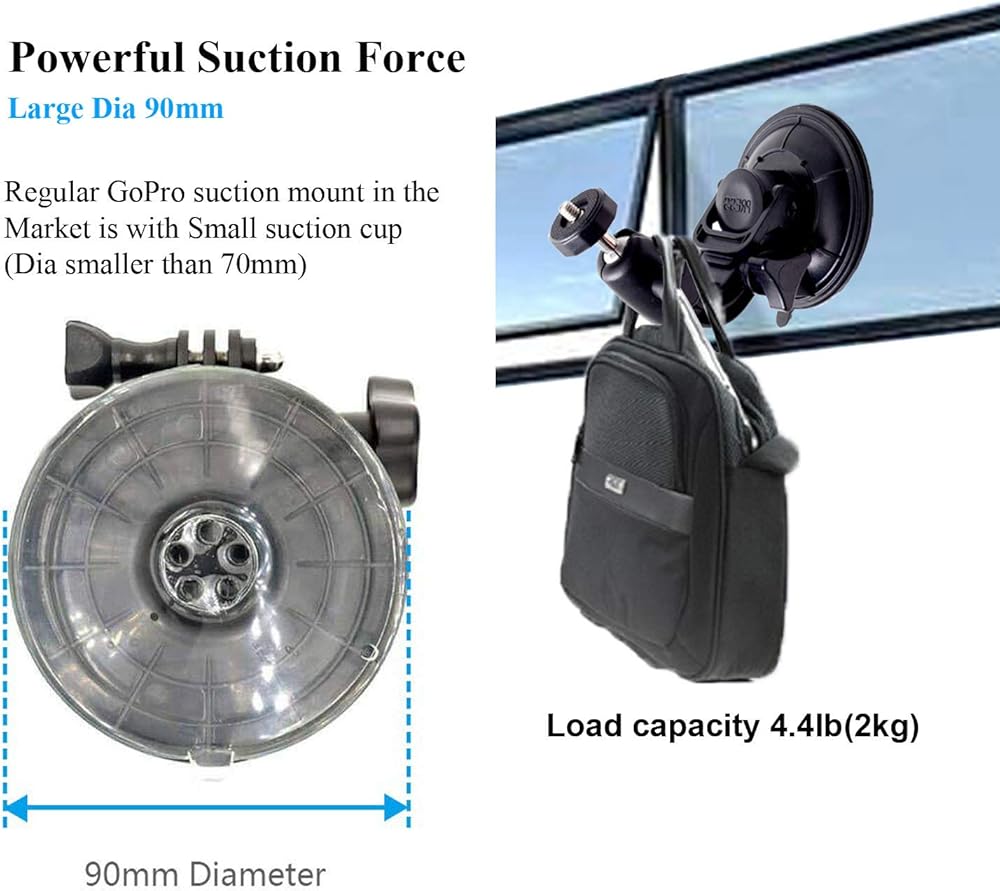 • Suction Cup Mount is extendable height with 360 Degree tilt, turn and rotation offers unlimited shooting possibilities.