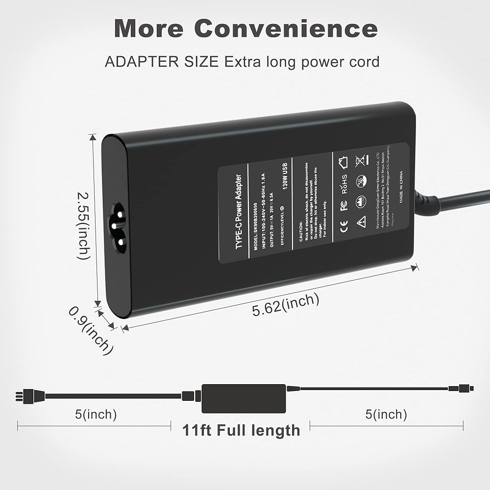المواصفات: محول طاقة USB C من النوع C بقدرة 130 وات؛ جهد الإدخال: 100-240 فولت ~ 50-60 هرتز ؛ معلمات الإخراج: 5 فولت/20 فولت - 1 أمبير/6.5 أمبير 130 وات؛ حجم الموصل: USB نوع C