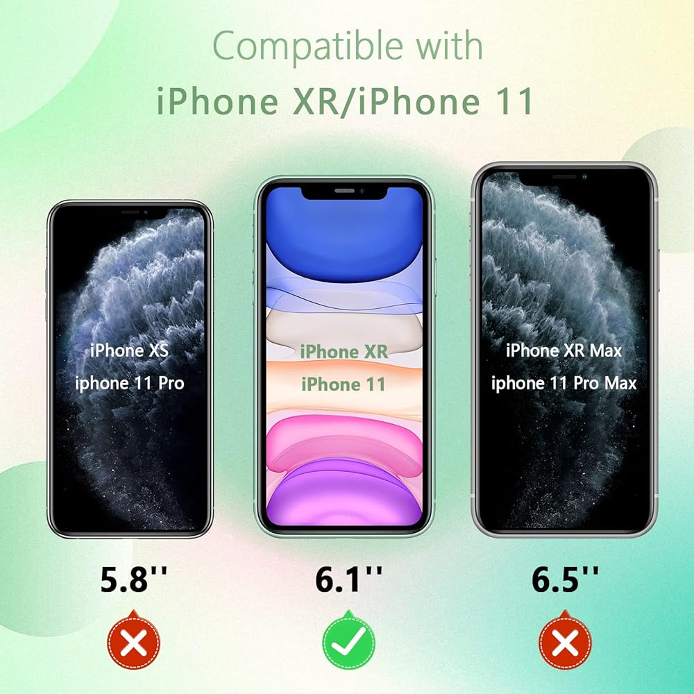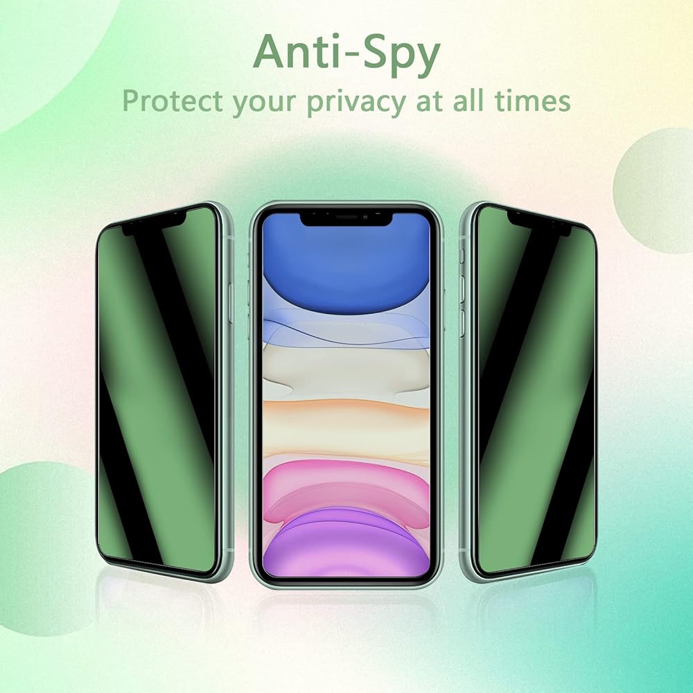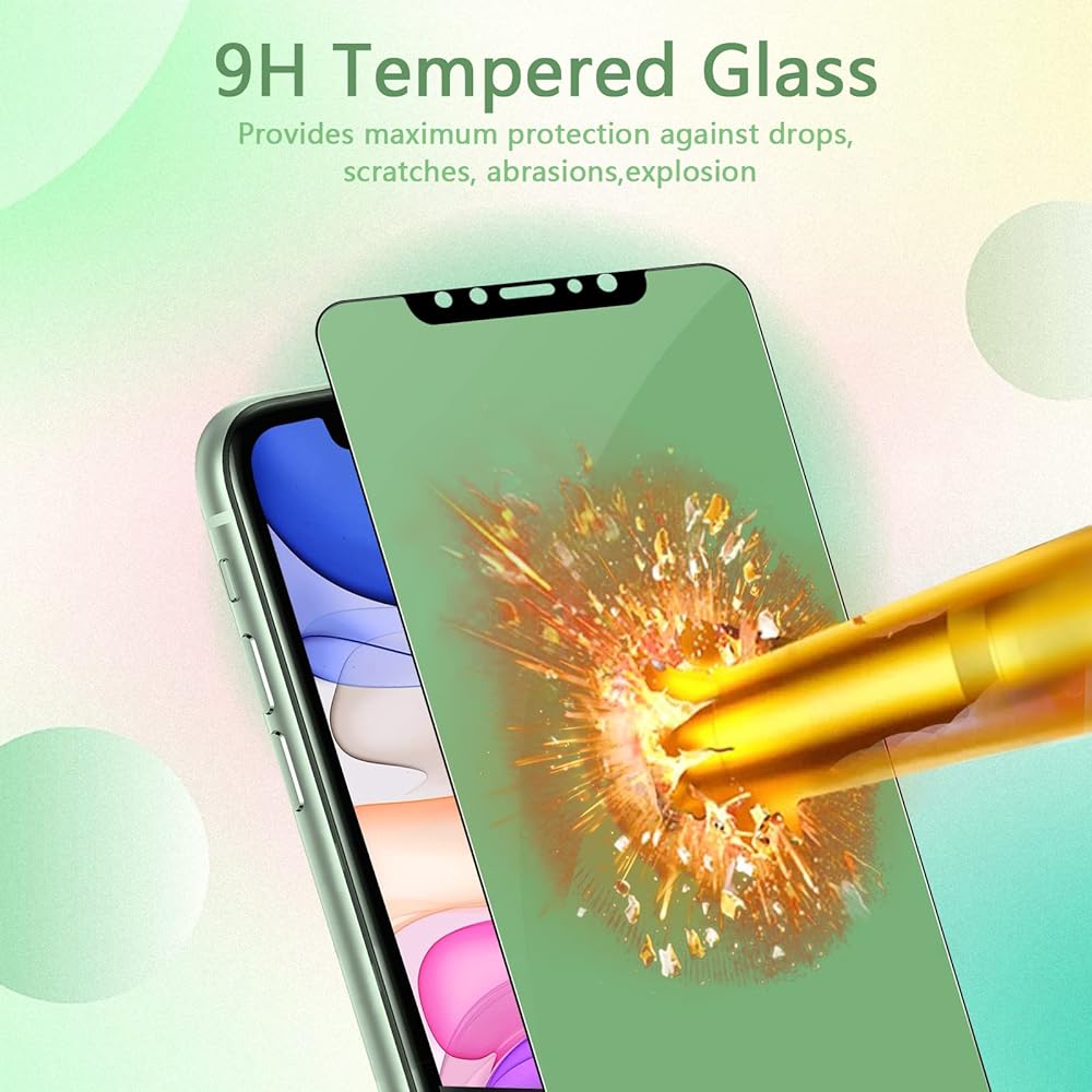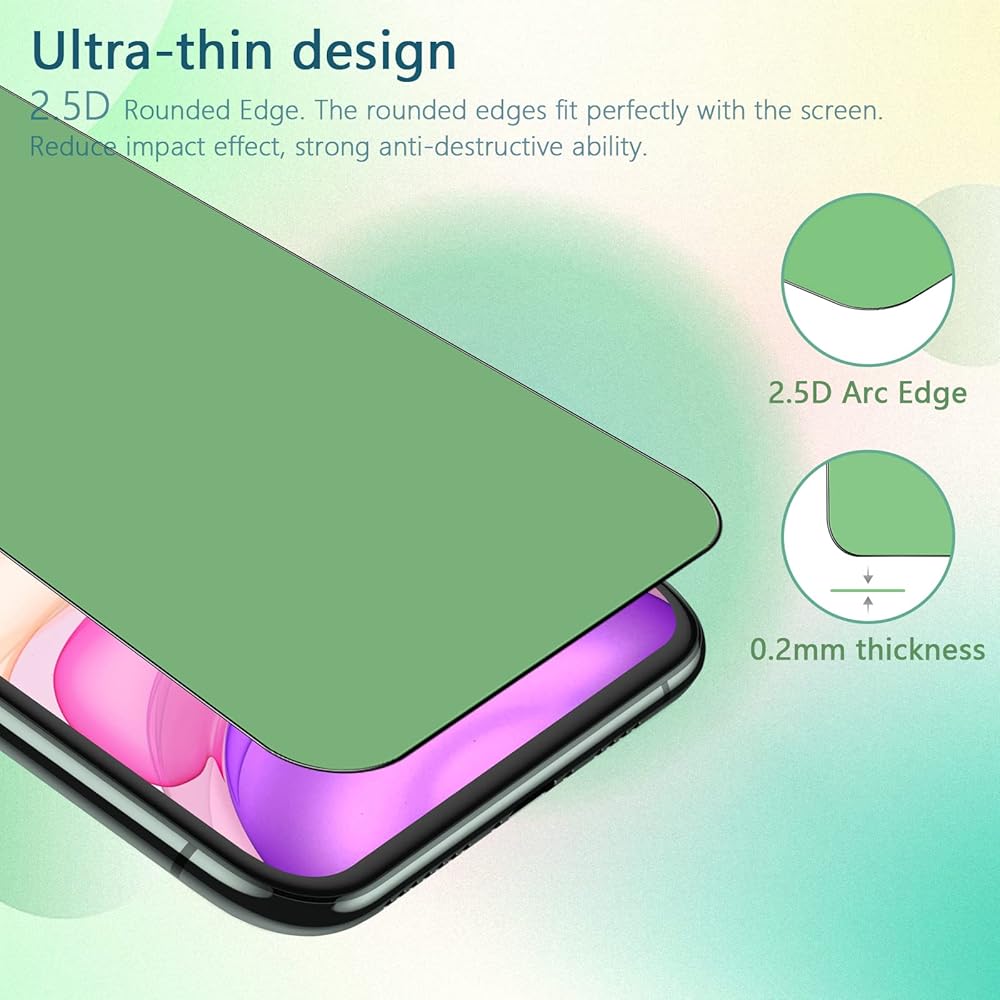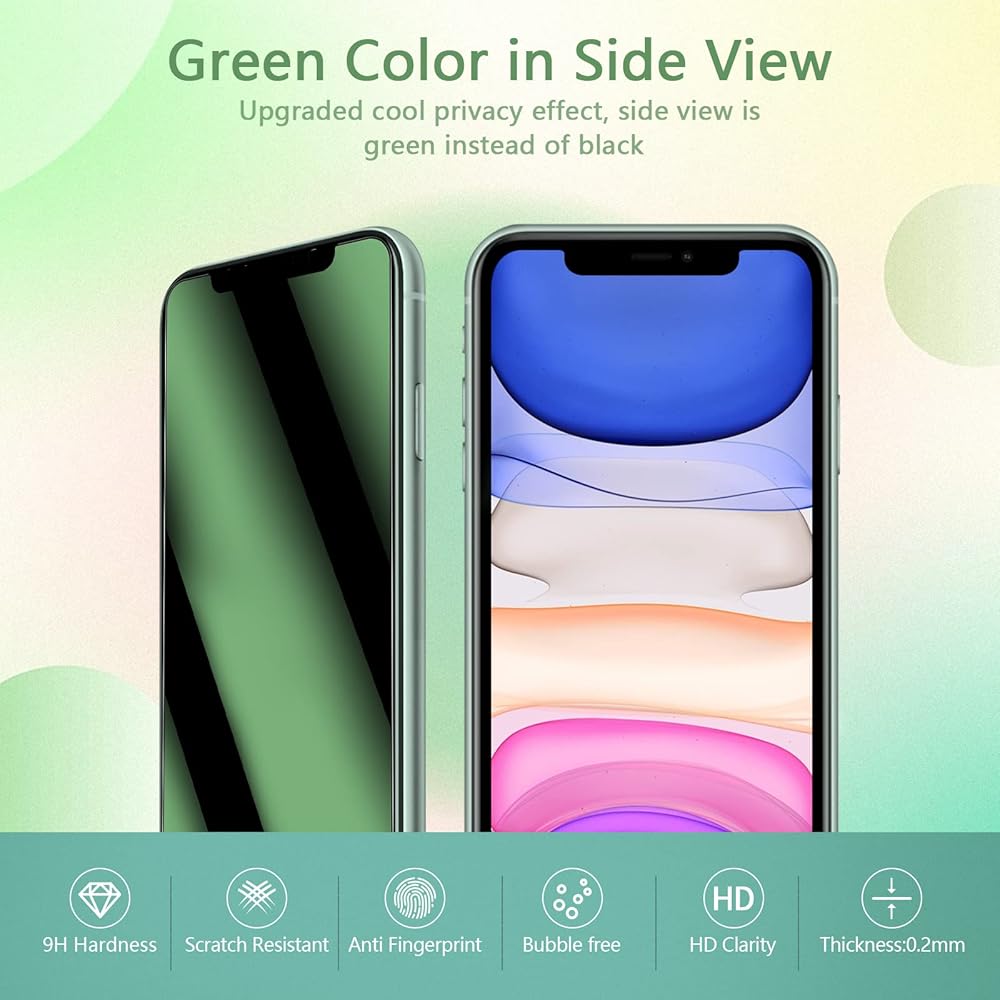 [نموذج متوافق] تم تصميم واقي شاشة الخصوصية الأخضر الرائع خصيصًا لهاتف iPhone 11/iPhone XR 6.1 بوصة. تتضمن عبوتين من واقيات الشاشة الزجاجية الملونة باللون الأخضر وحزمة واحدة من إطار التثبيت.
