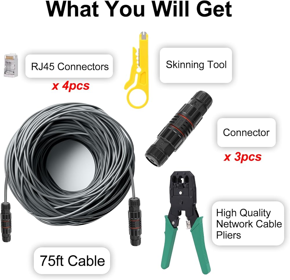 BABORUI 75 Ft Replacement Cable for Starlink with Repair Kit, IP68 Waterproof Supports 1000M Protocol Internet Replacement Tools Kit, Pure Copper Data Transmission for Starlink Cable Replacement