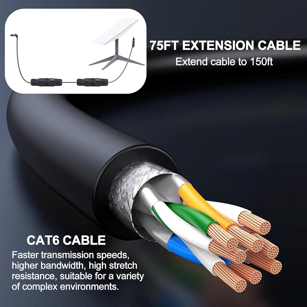 Extended Connection Reach: The Replacement Ethernet Cable for Starlink offers a 75-foot extension, allowing for easy installation at a greater distance while maintaining signal strength, perfect for users who need to extend the range of setup for Starlink.