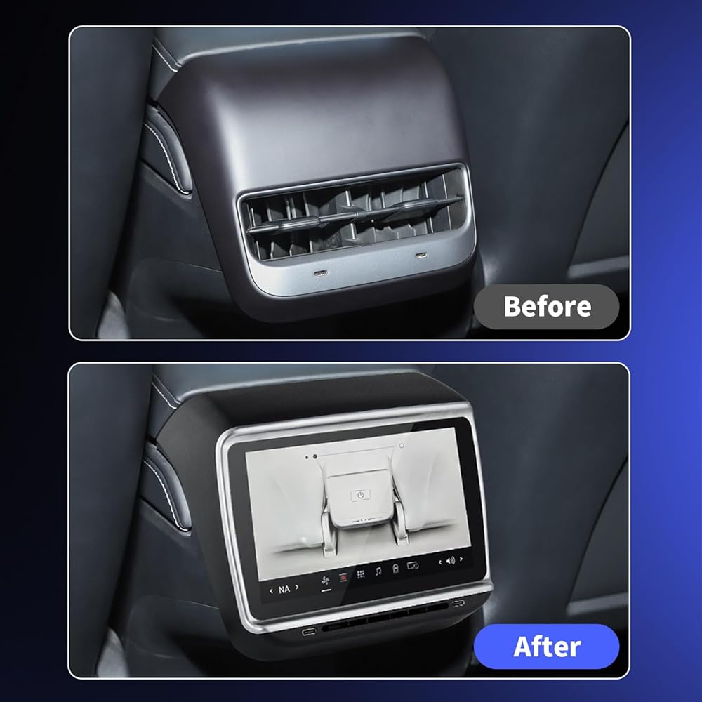 【فتحات تهوية كبيرة مطورة】أطلقت شاشة العرض الخلفية من تيسلا فتحة تهوية جديدة مطورة. لن تنخفض سرعة الرياح مقارنة بالسيارة الأصلية، لتستمتع بتجربة نفخ مريحة. تدعم لوحة العرض الخلفية تعديل مقعد الراكب الأمامي ومسند الظهر (الأمامي/الخلفي)، وتعديل تدفئة المقعد الخلفي المستقل، والتحكم في مناخ تكييف الهواء، وتعديل سرعة الرياح.